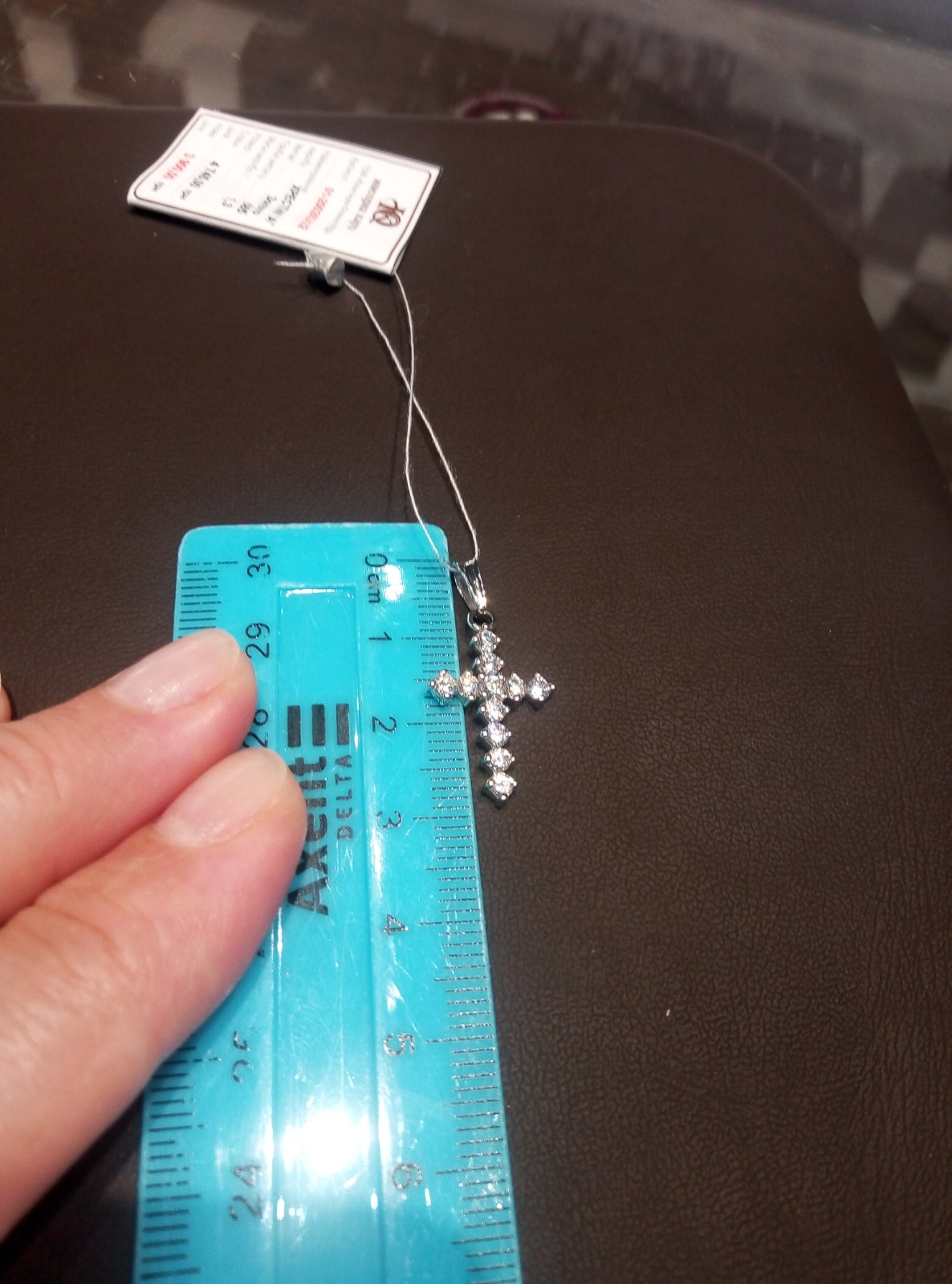 Хрестик з золота білого кольору з цирконом 01-200282432