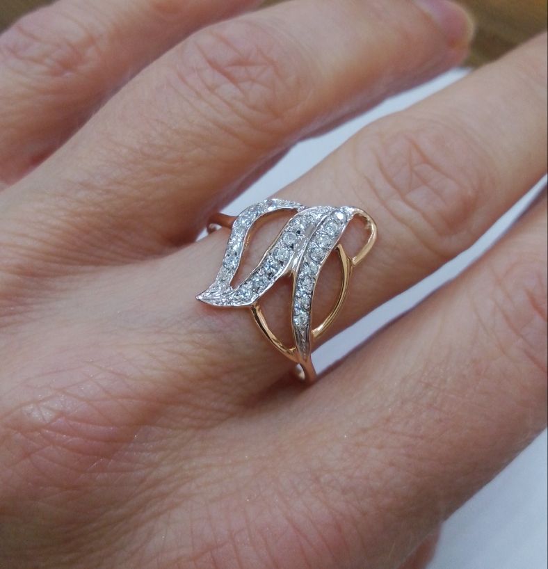 Каблучка з червоного з білим золота з цирконом 01-200342644