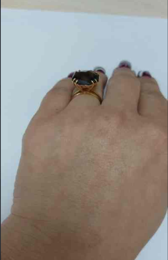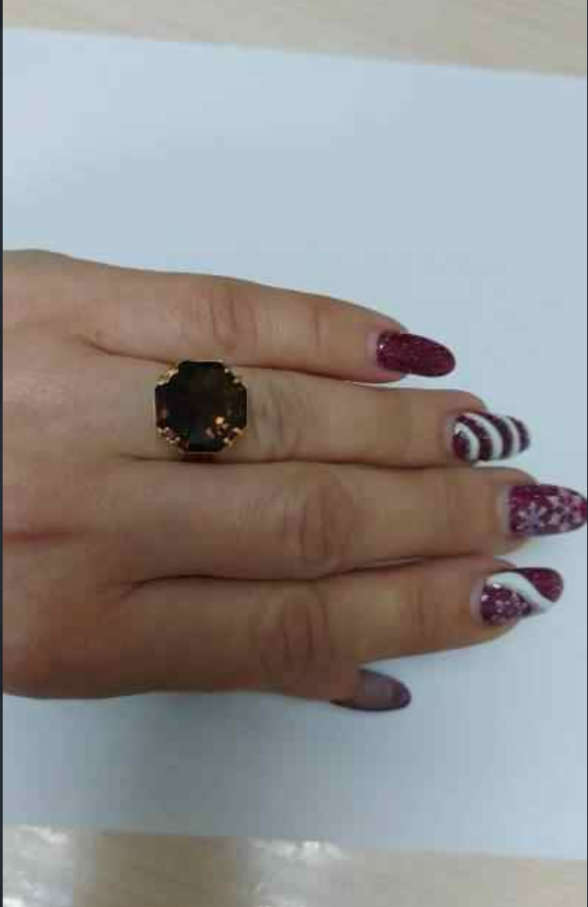 Каблучка з золота червоного кольору з коричневим кварцом 01-200459021