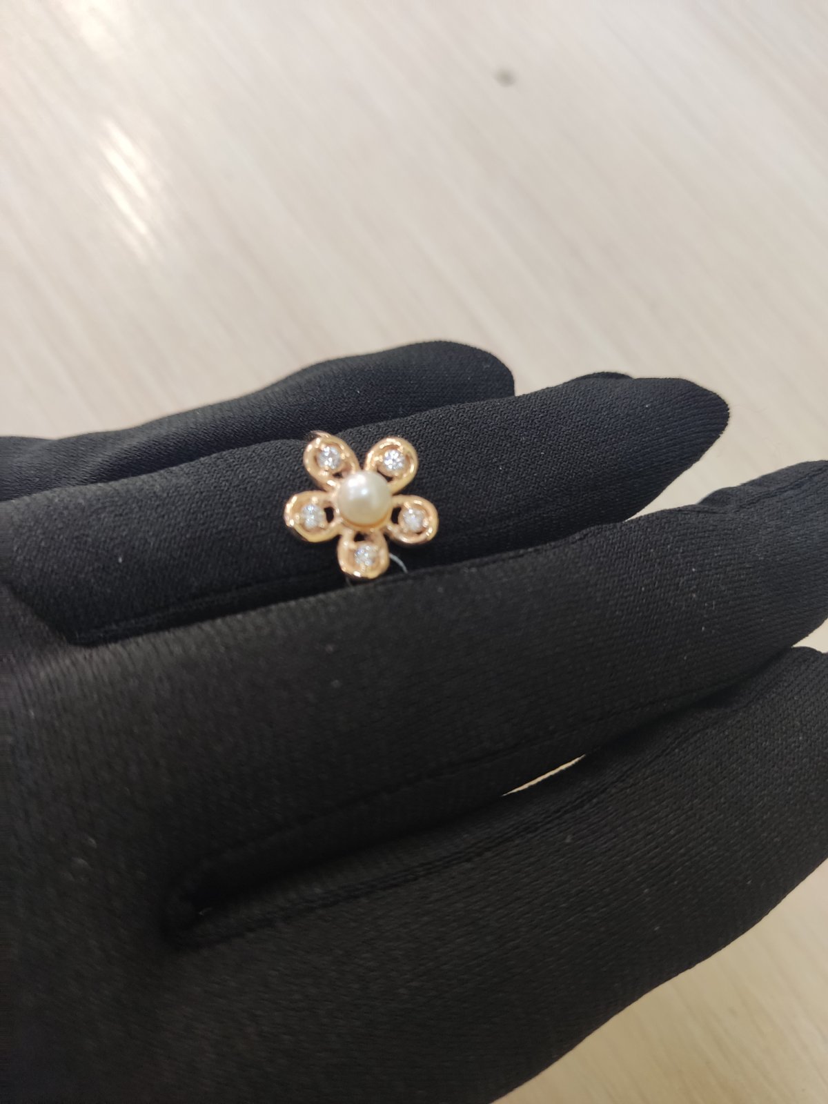 Каблучка з золота червоного кольору з перлиною та цирконом «Квітка» 01-200410455