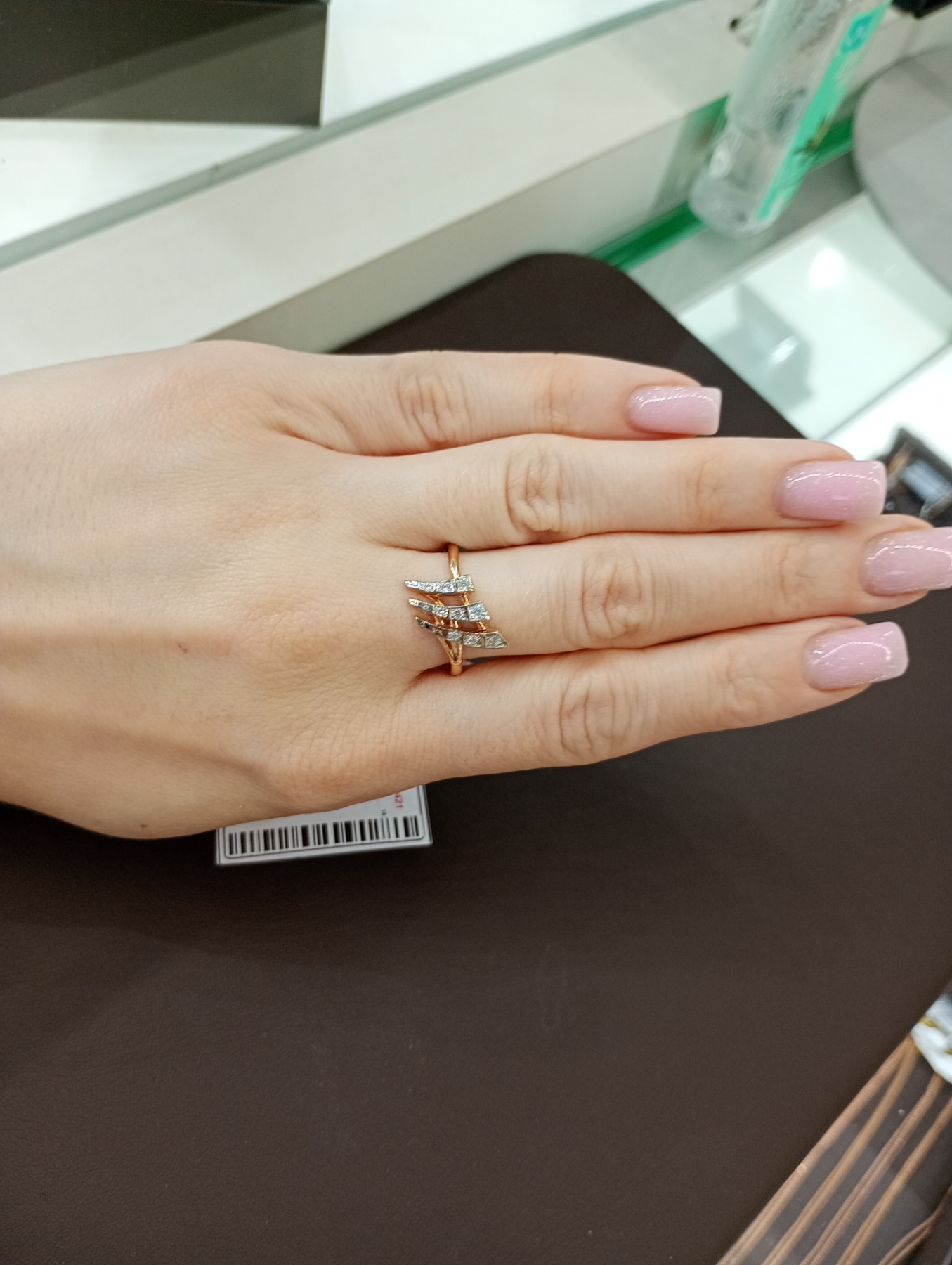 Каблучка з золота червоного з білим кольору з цирконом 01-200180421