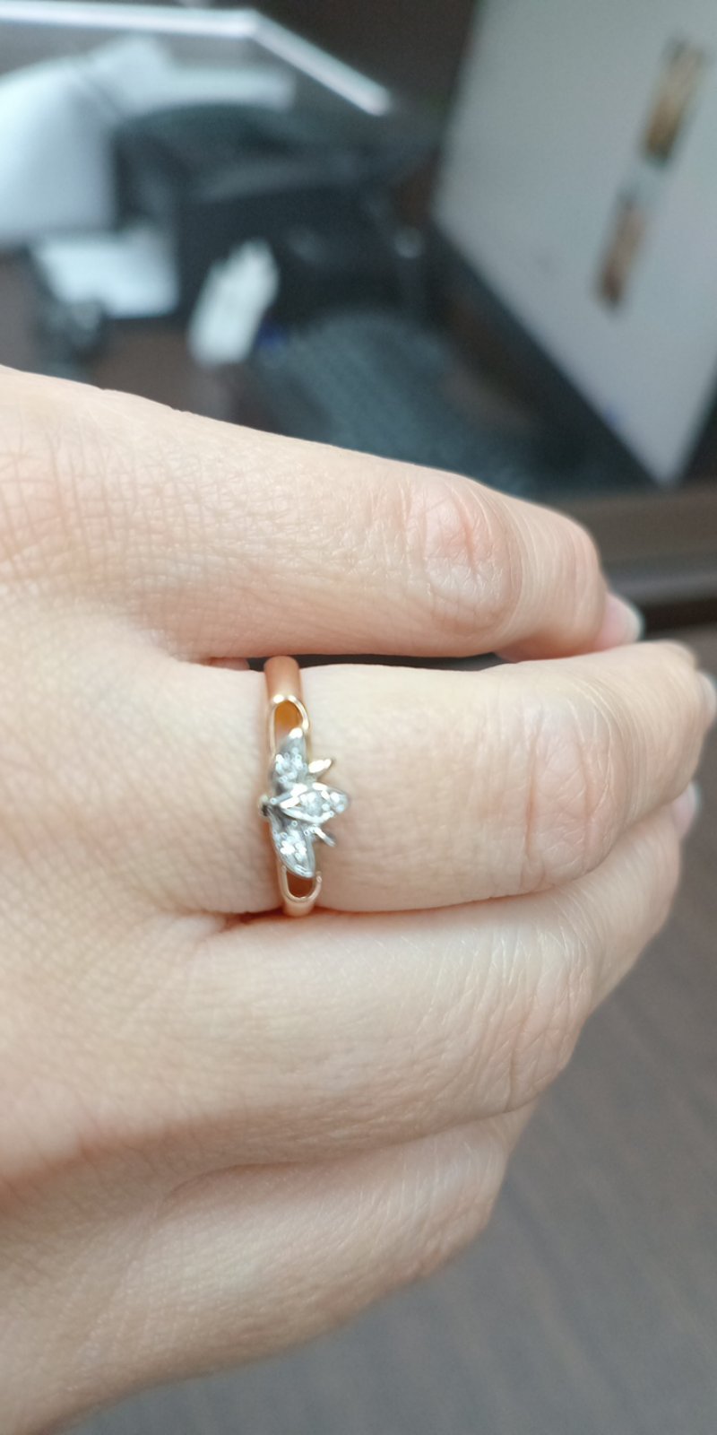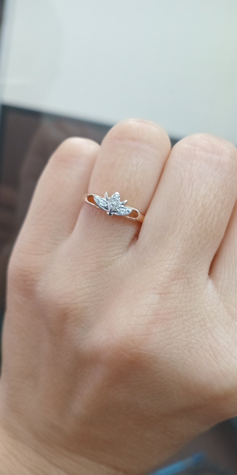 Каблучка з золота червоного з білим кольору з цирконом 01-200343451