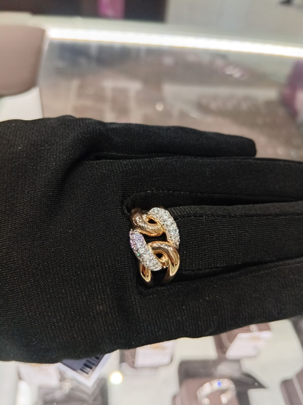Каблучка з золота червоного з білим кольору з цирконом «Ланки» 01-200786327