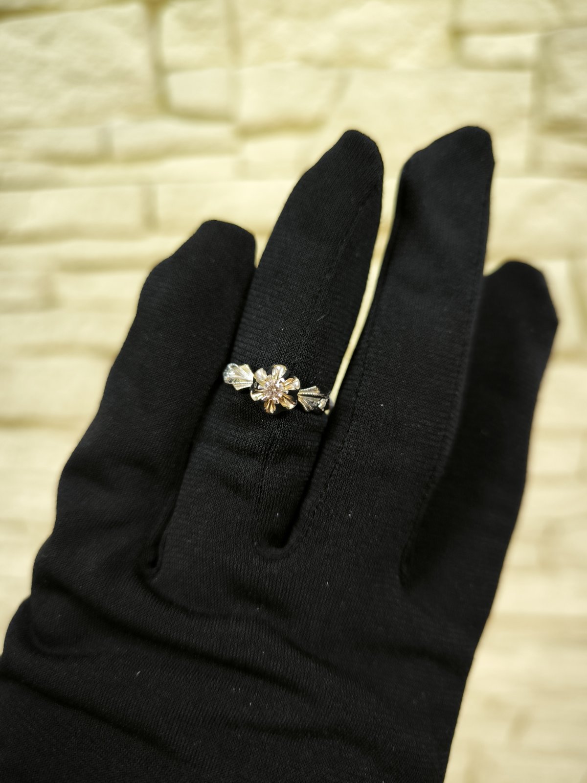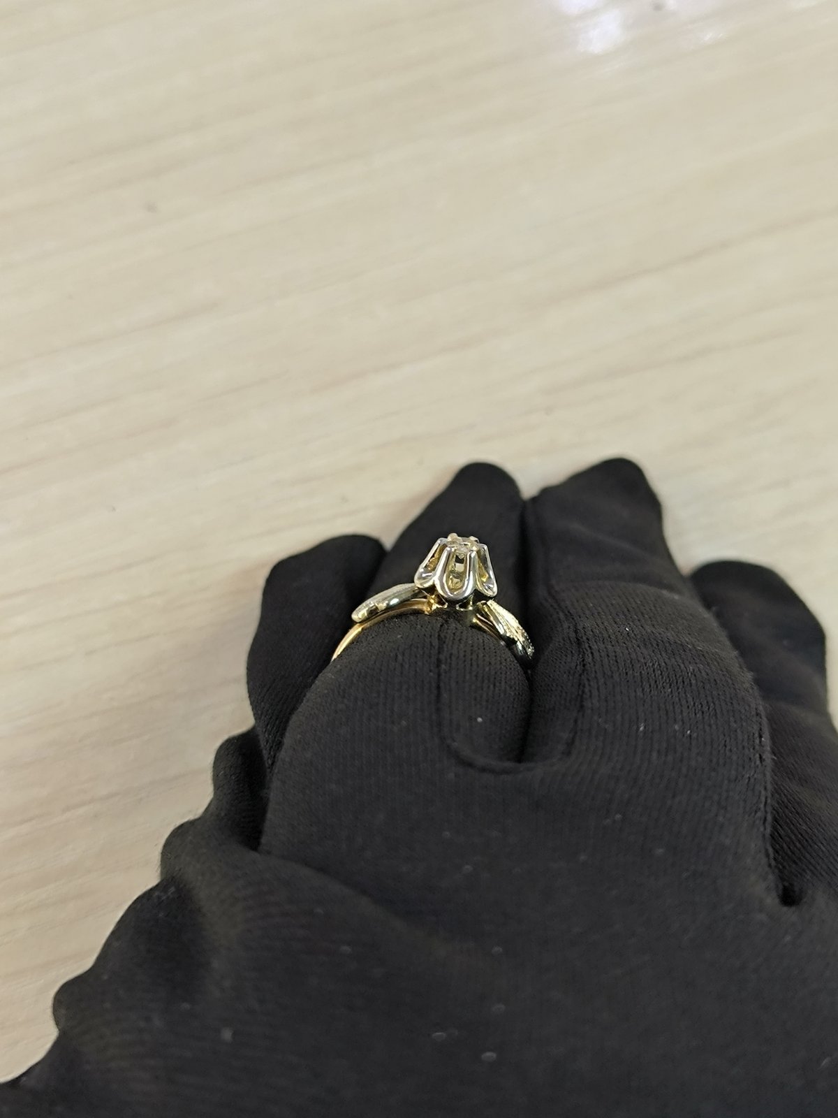 Каблучка з золота червоного з білим кольору з жовтим та білими діамантами 01-200435403