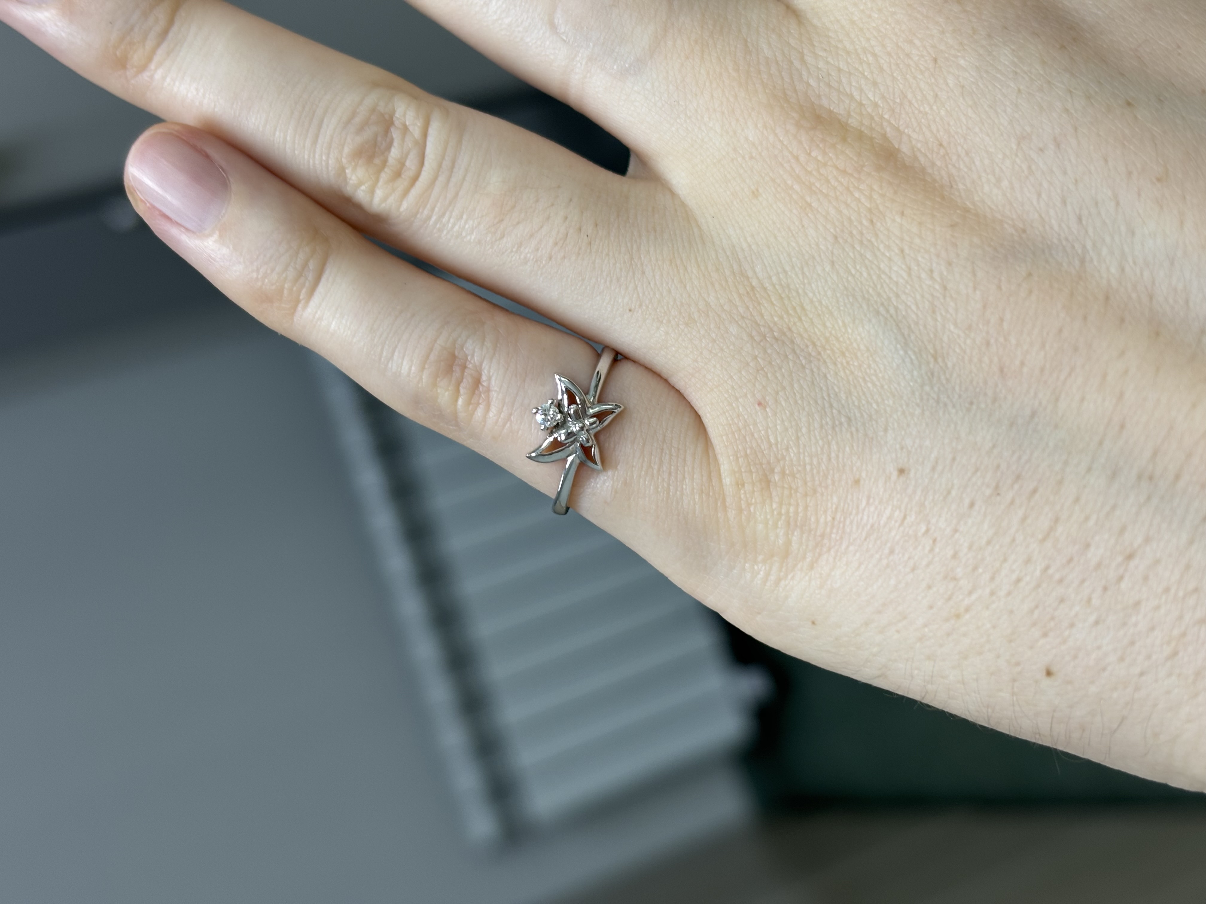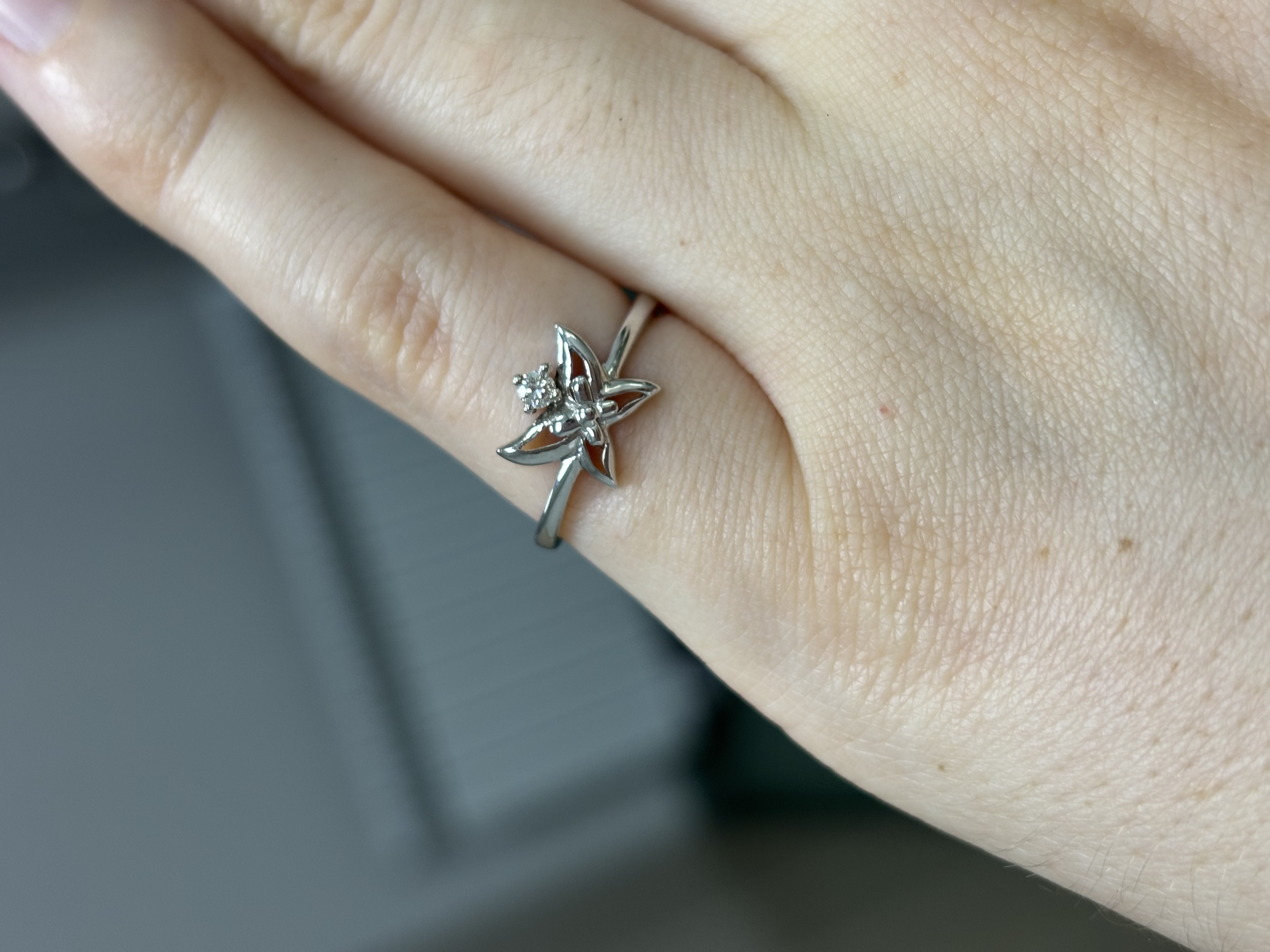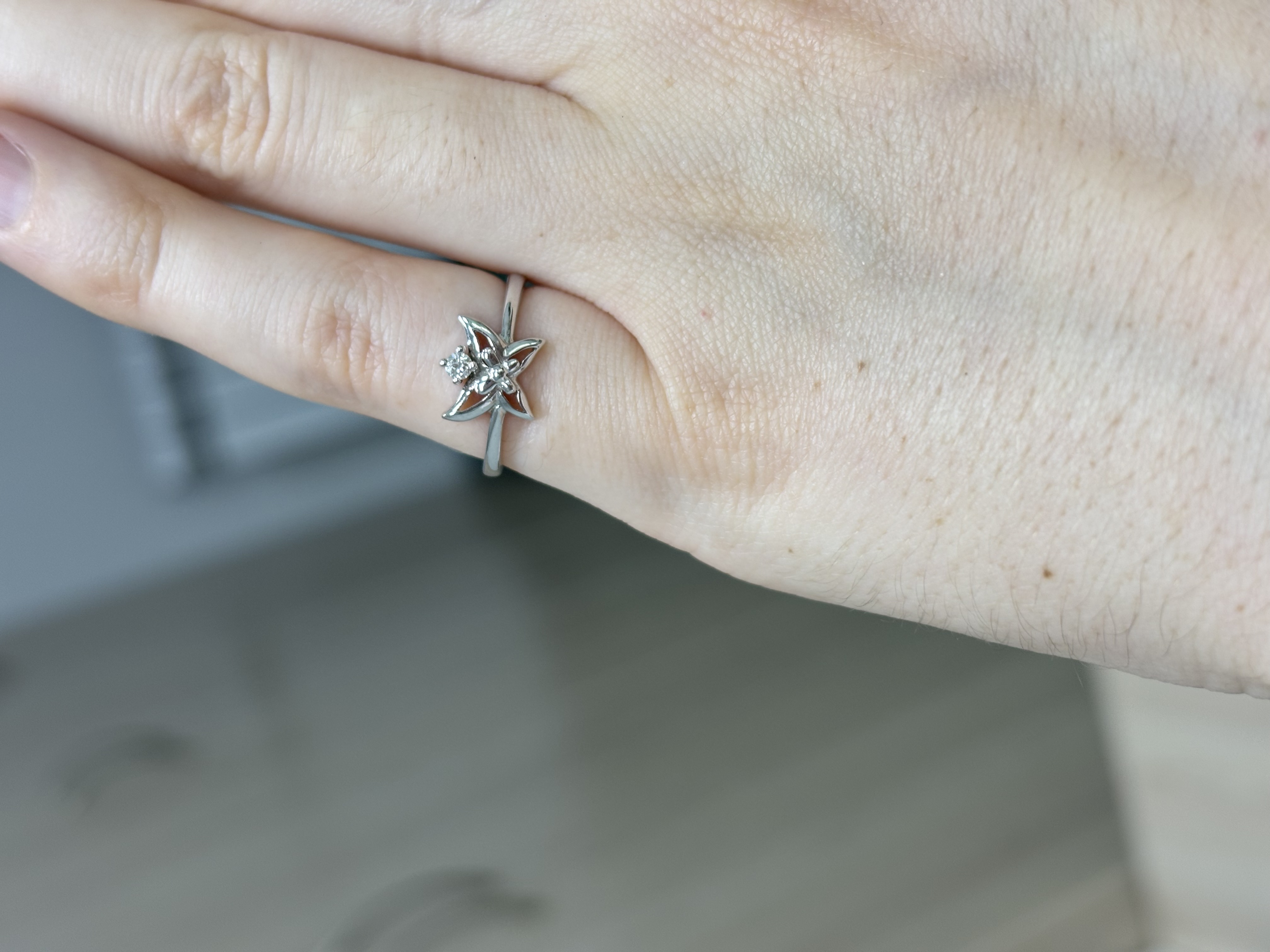 Каблучка з золота у білому кольорі з білим діамантом «Метелик» 01-19327717