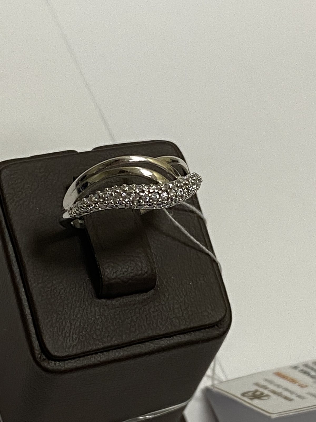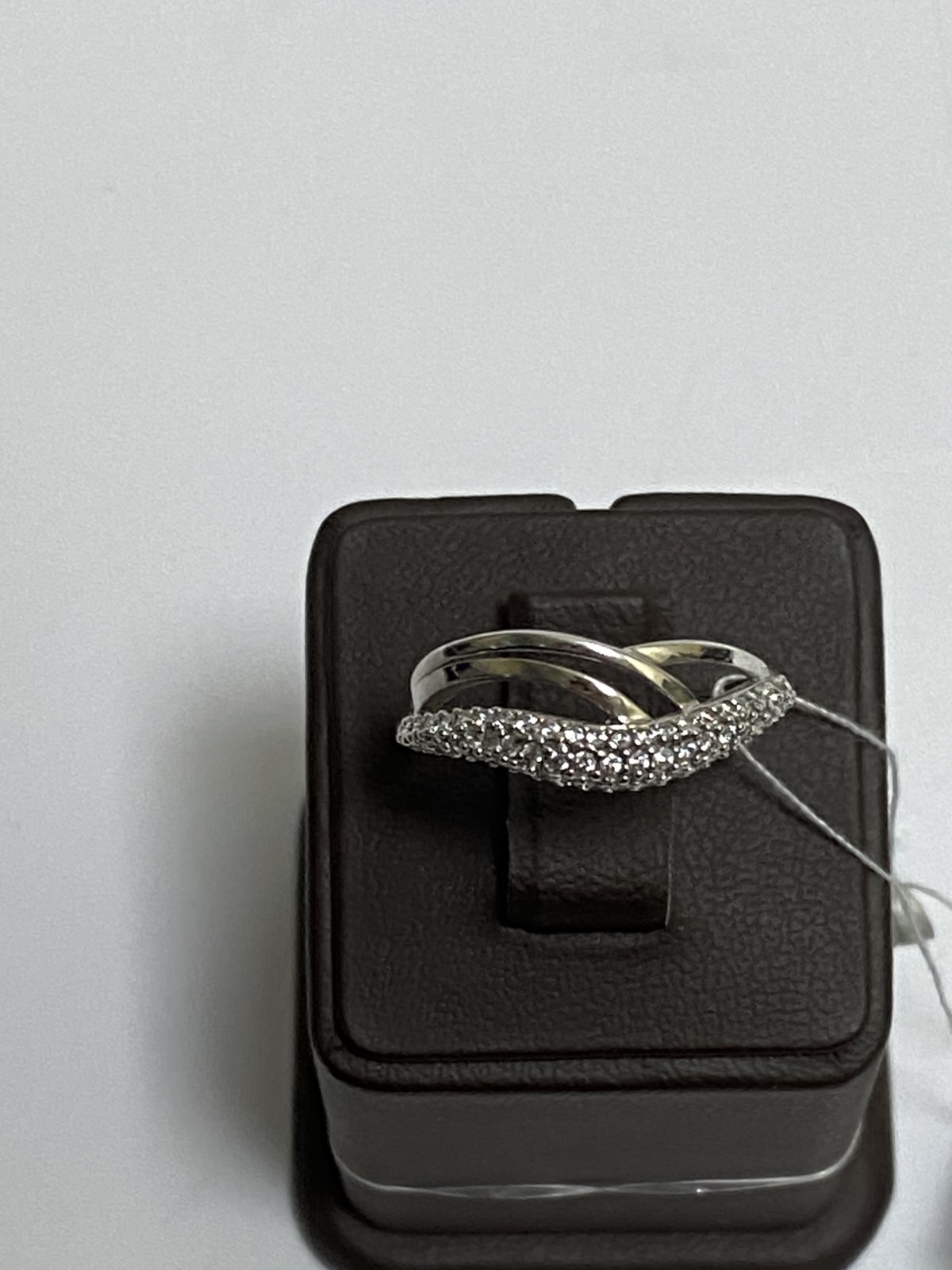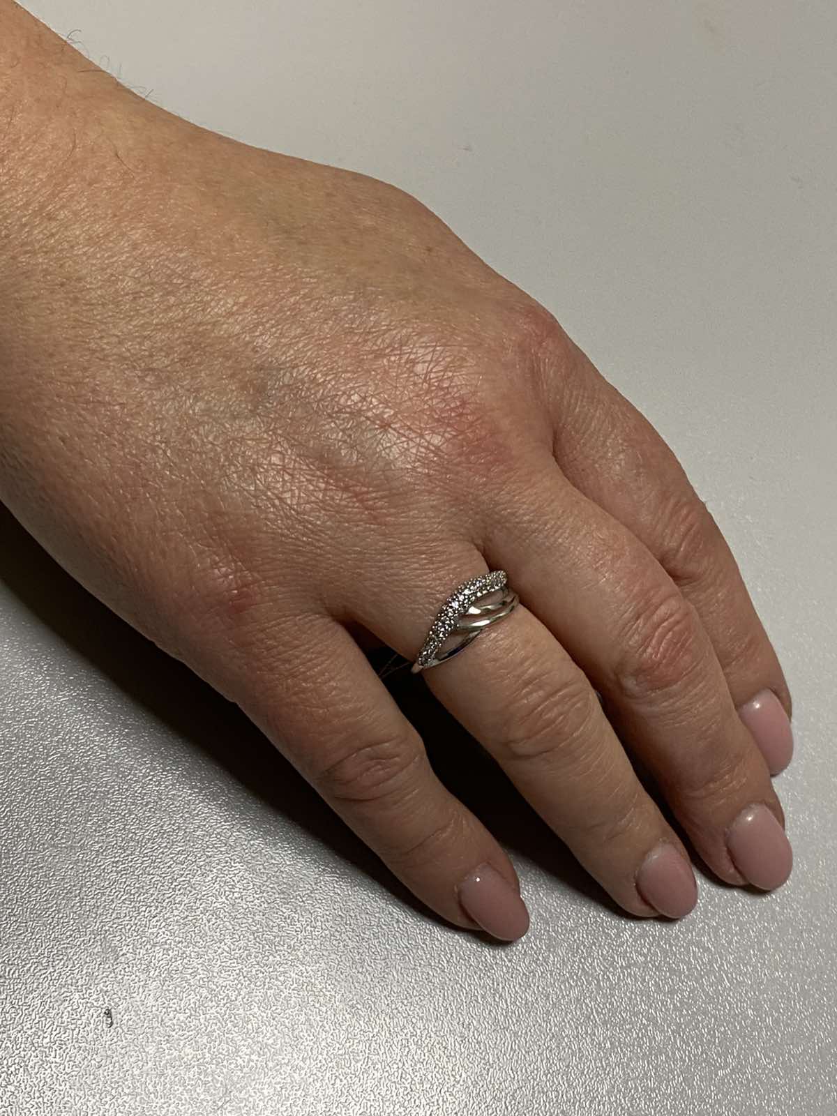 Каблучка з золота у білому кольорі з цирконом 01-19235898
