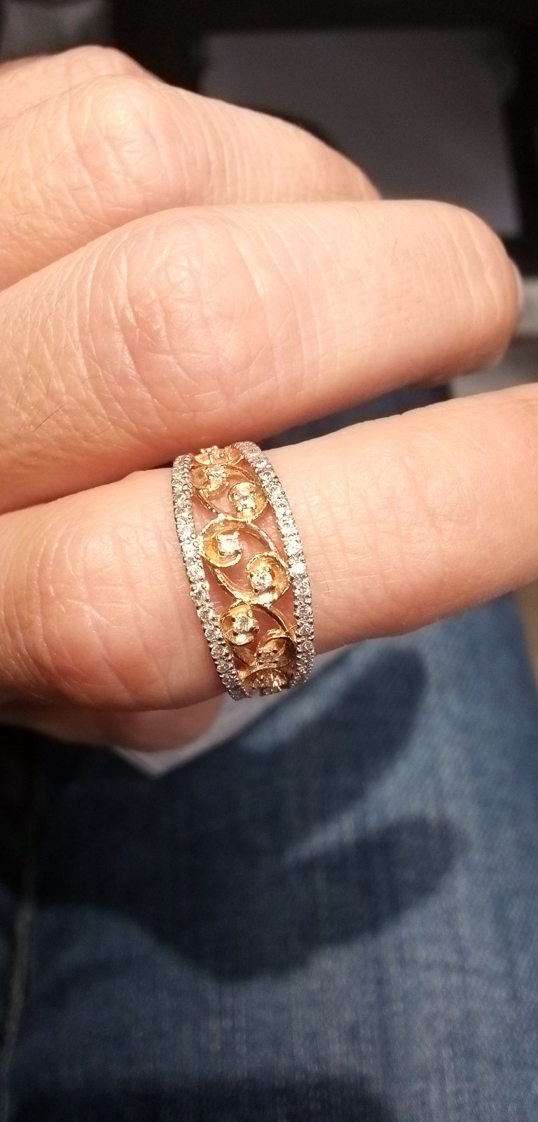 Каблучка з золота у червоному з білим кольорі з цирконом 01-200118673