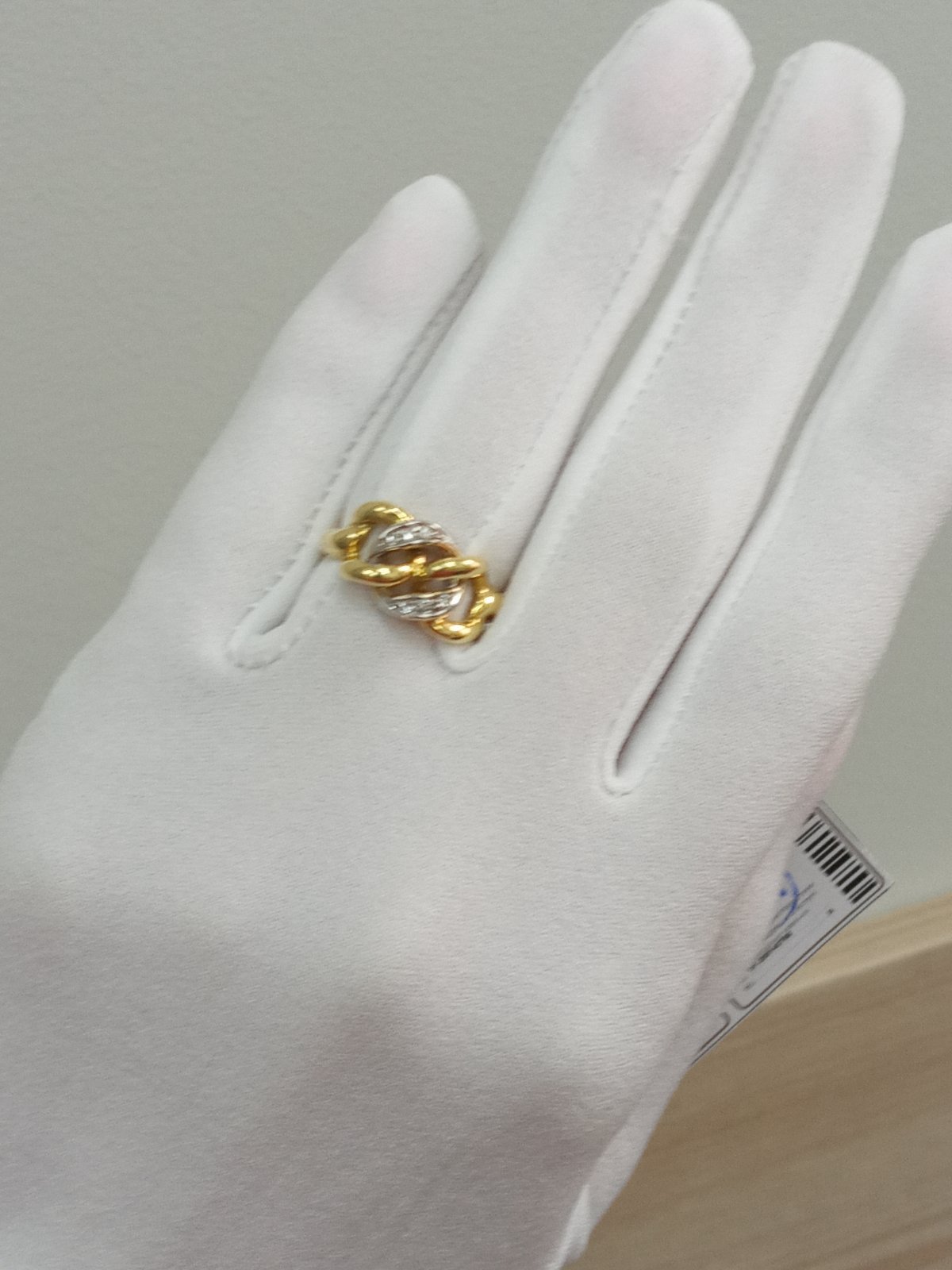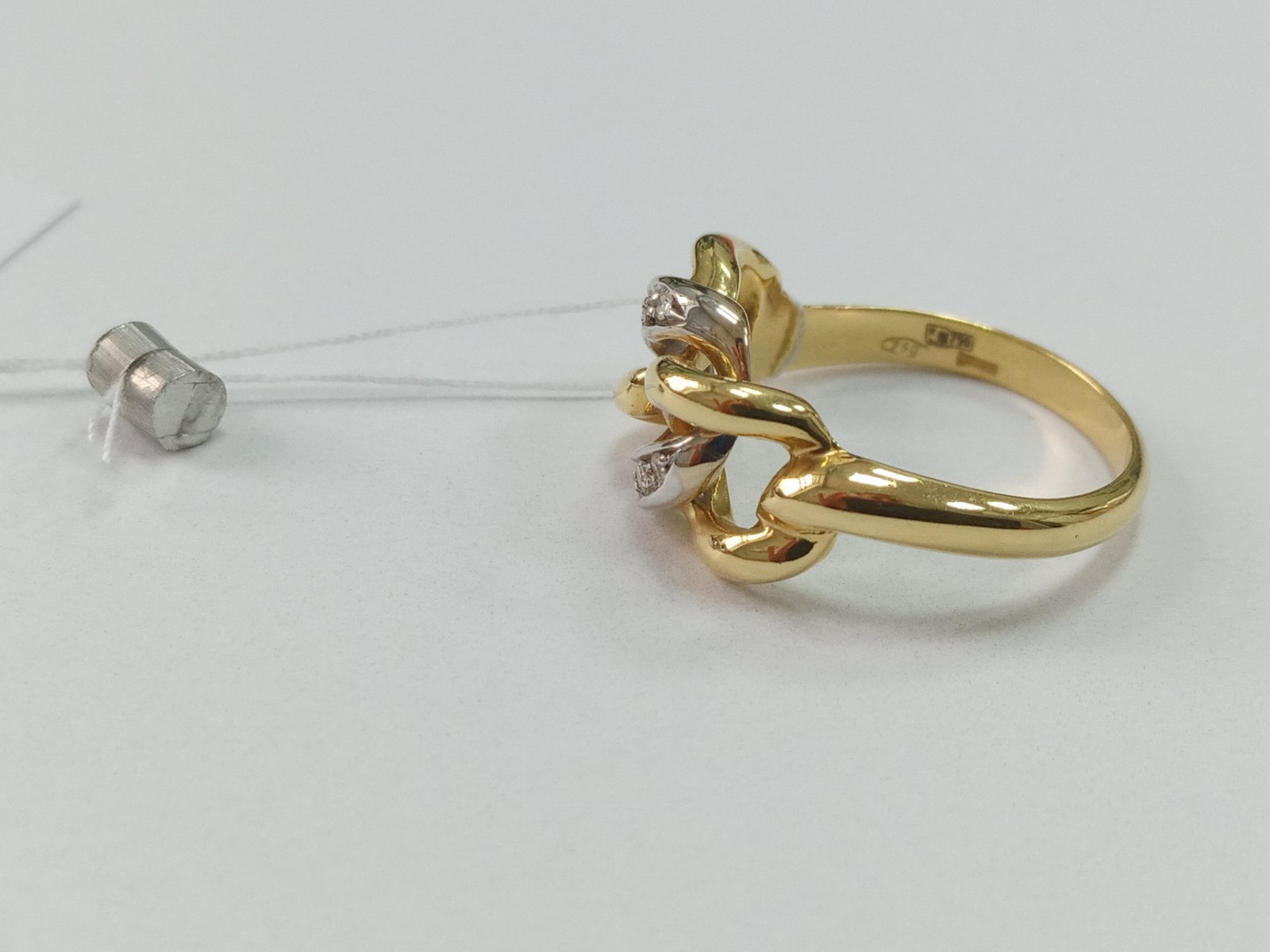 Каблучка з золота жовтого з білим кольору з білими діамантами 01-200140766