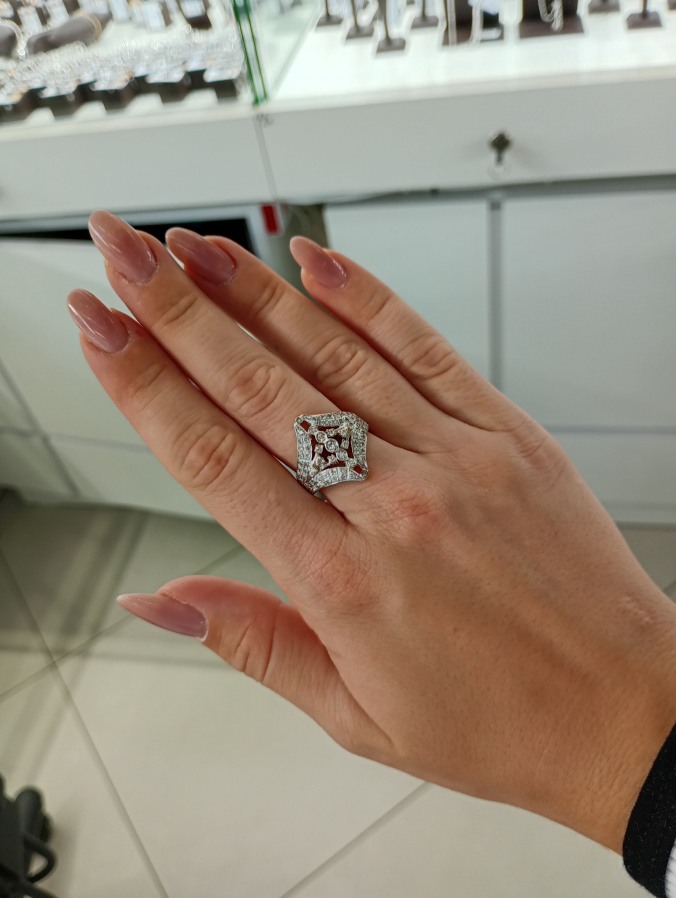 Каблучка з жовтого з білим золота з жовтими діамантами 01-200575184