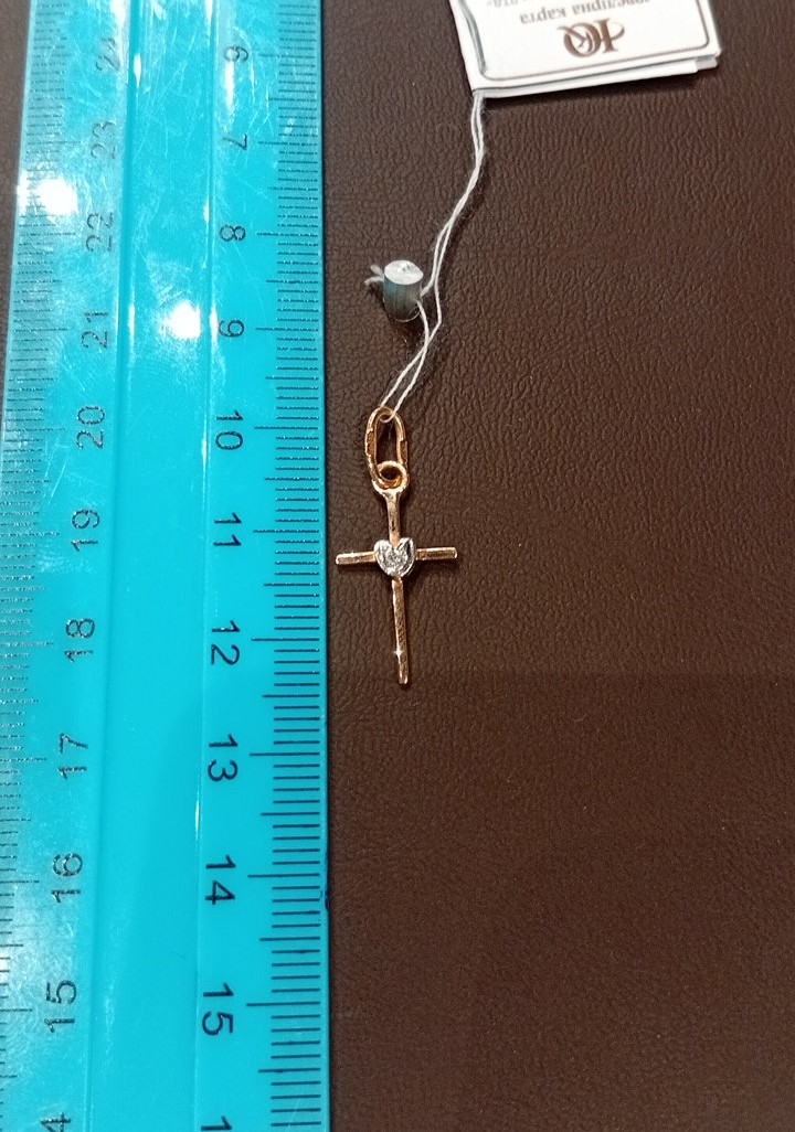 Крестик из красного с белым золота с желтым бриллиантом 01-200235943