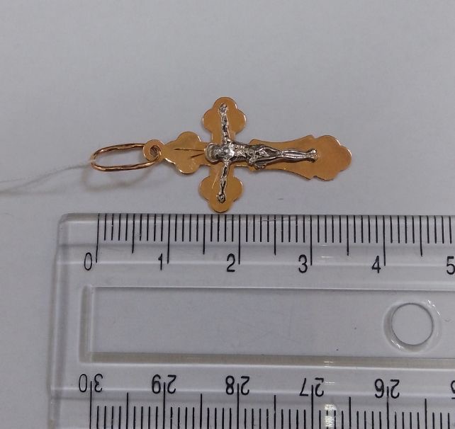 Крестик из золота в красном с белым цвете 01-200330374