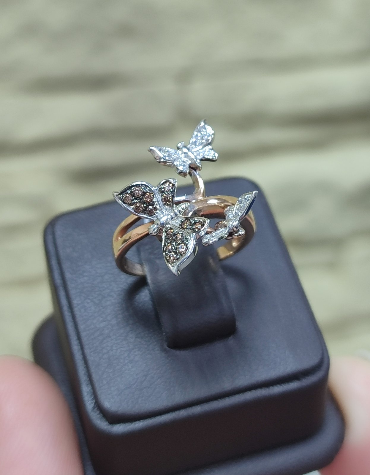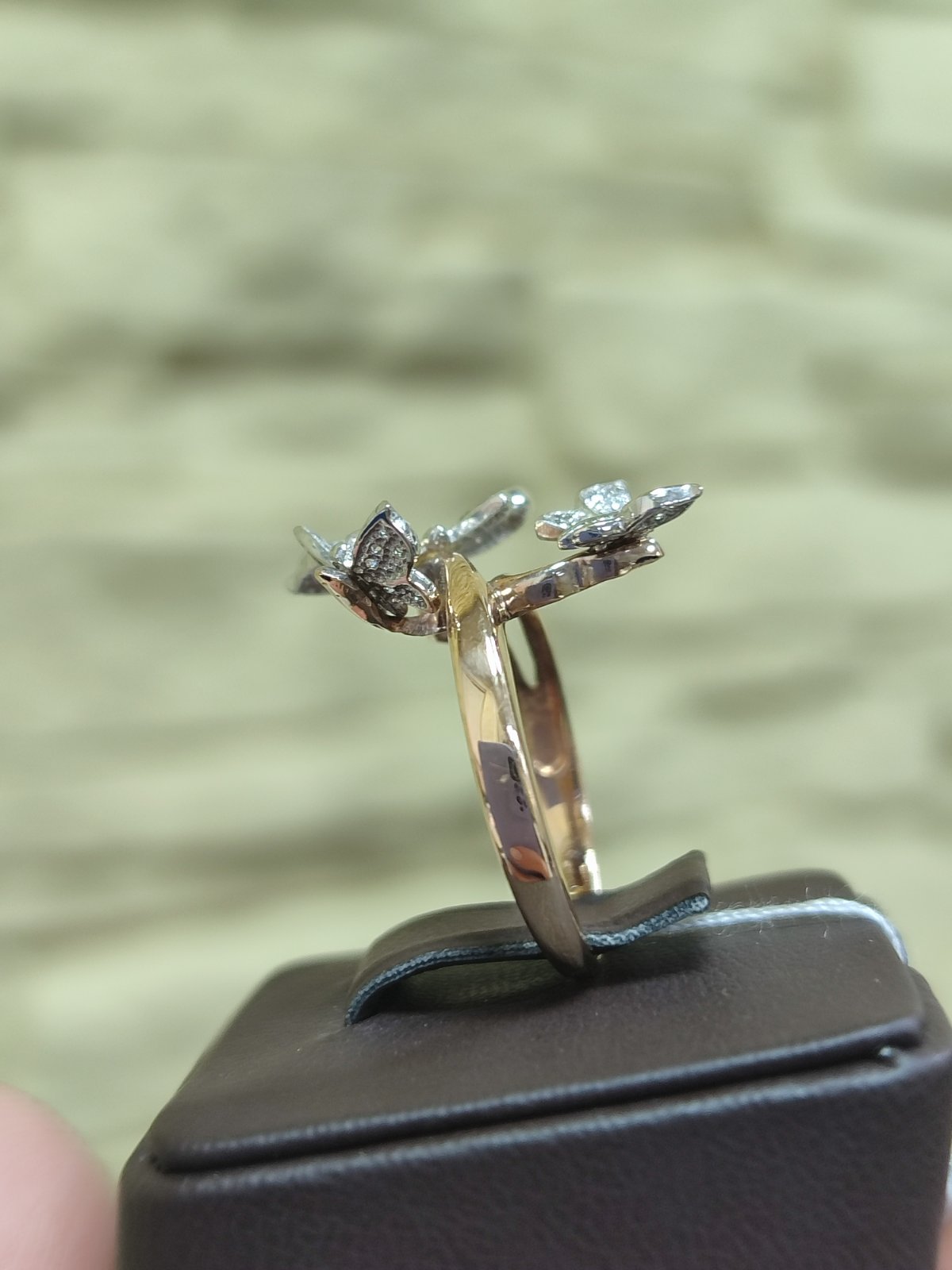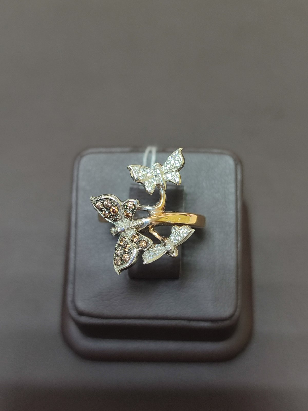 Кольцо из красного с белым золота с цирконом «Бабочки» 01-200140652