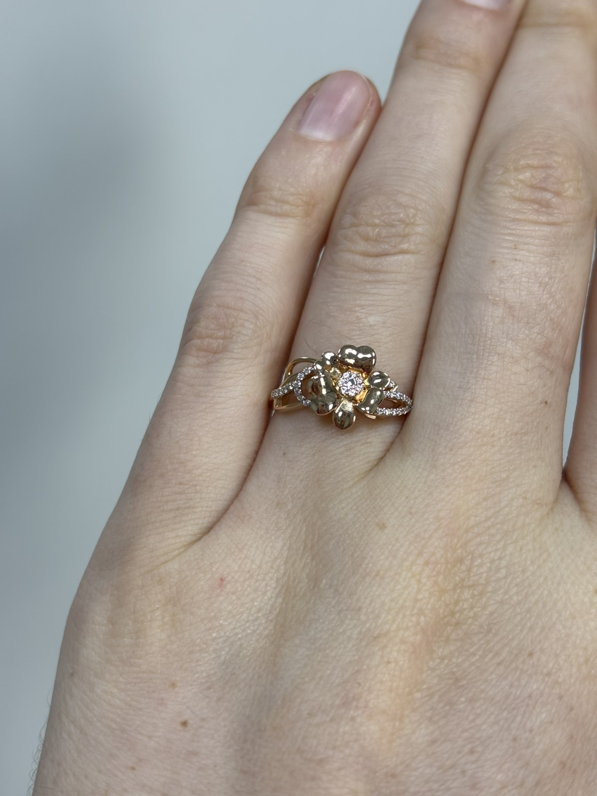 Кольцо из красного золота с цирконом «Цветок» 01-200491065
