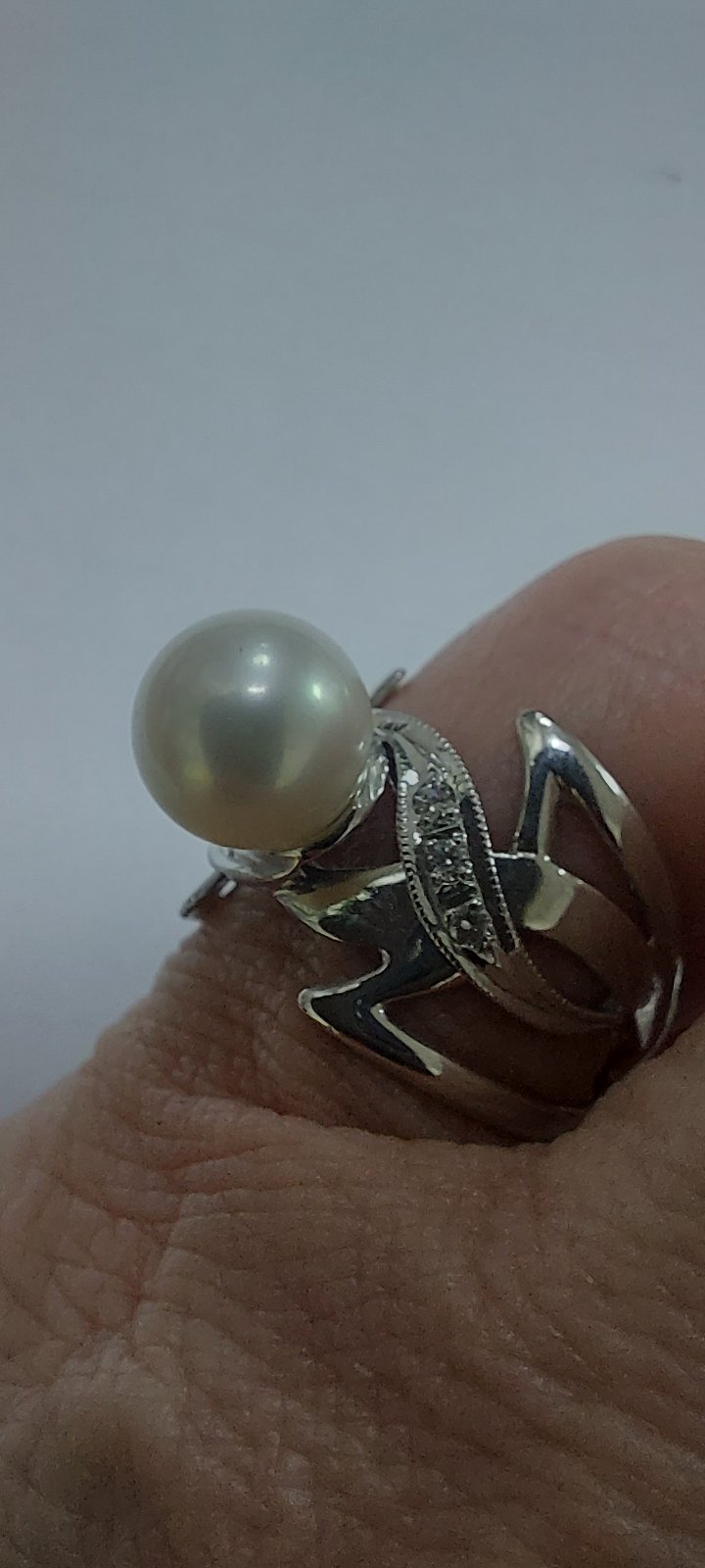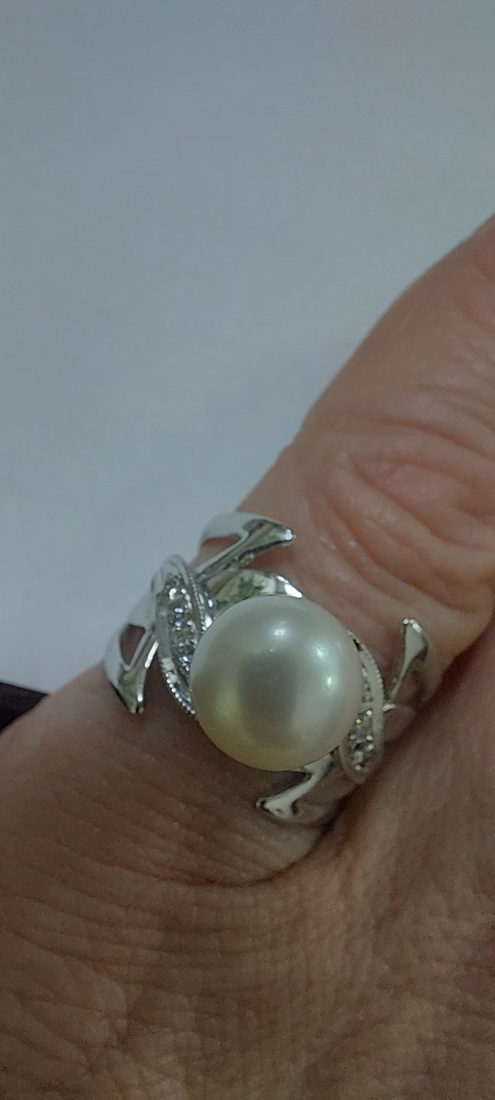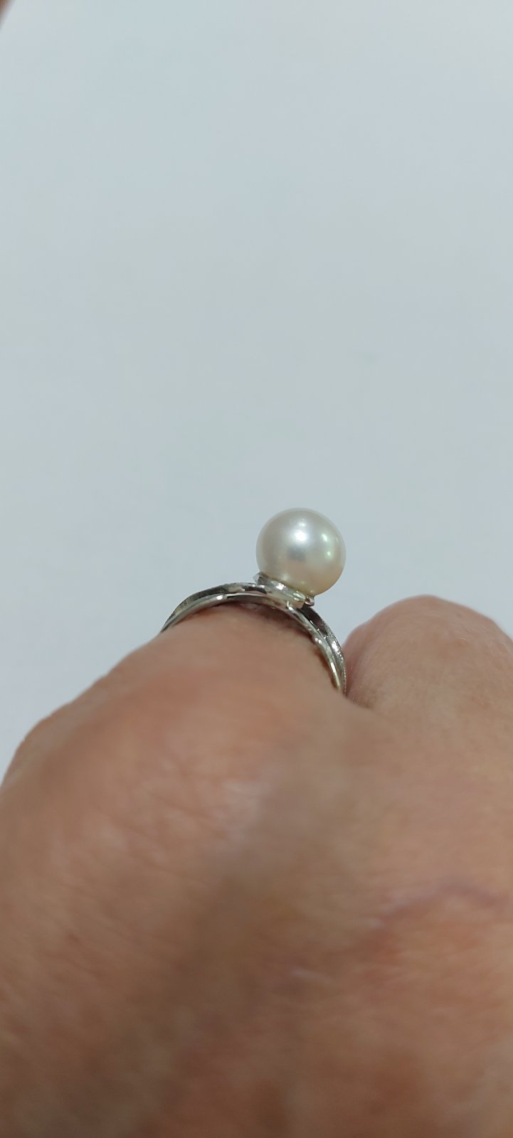 Кольцо из золота белого цвета с белыми бриллиантами и жемчугом 01-19246679