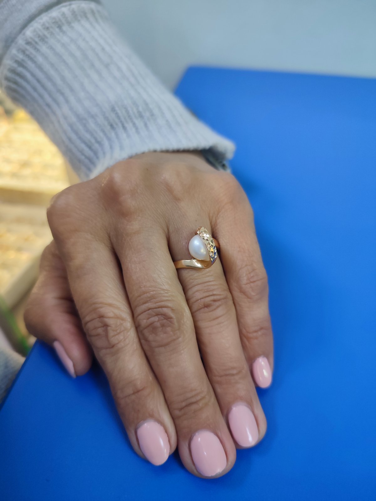 Кольцо из золота красного цвета с жемчугом 01-19163778