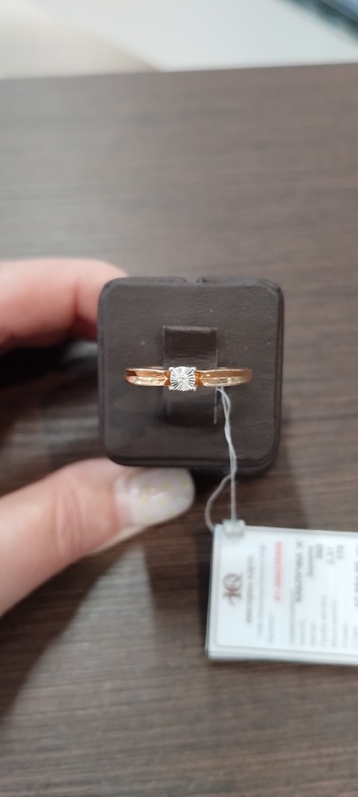 Кольцо из золота в красном с белым цвете с белым бриллиантом 01-200235909