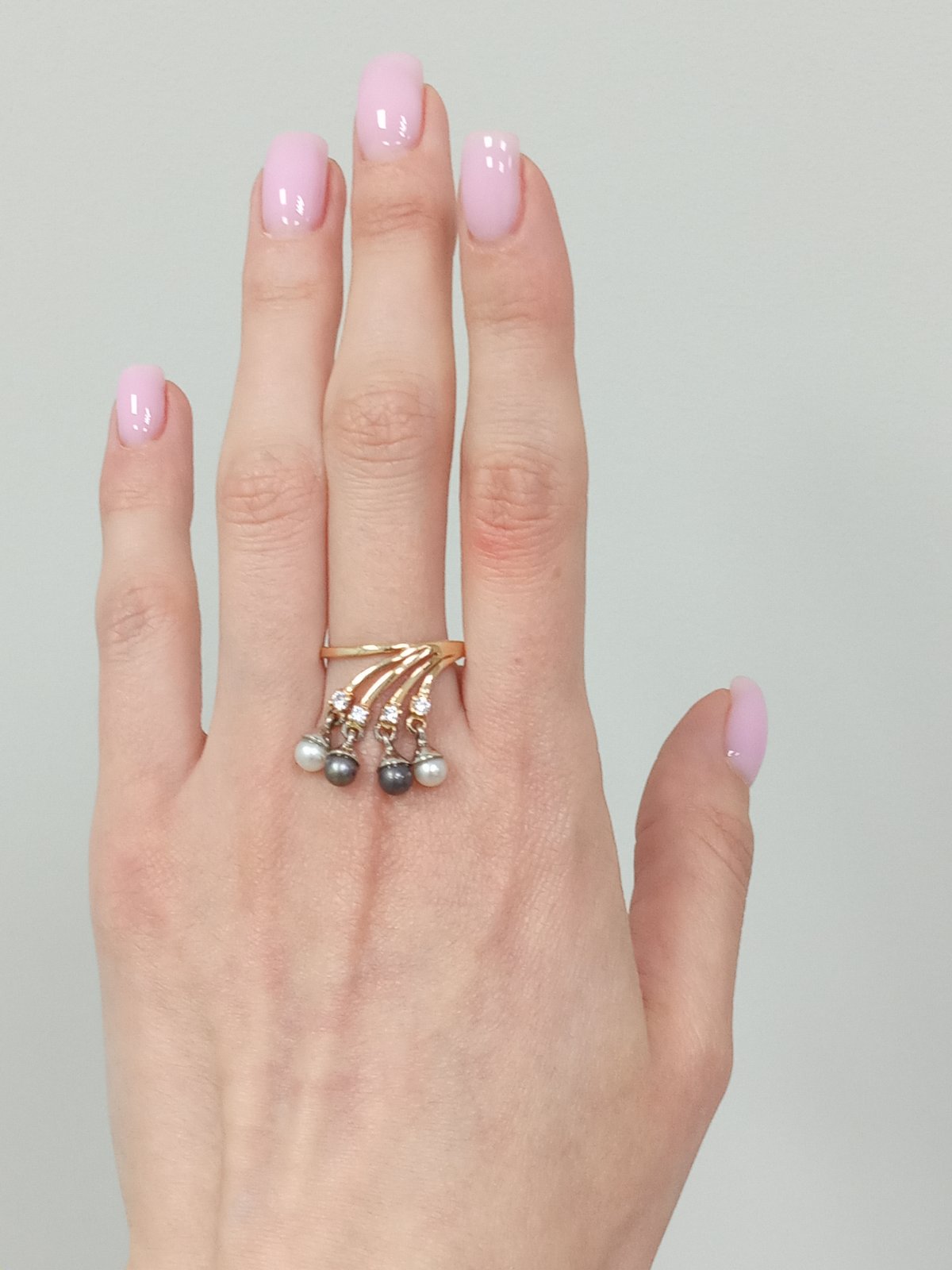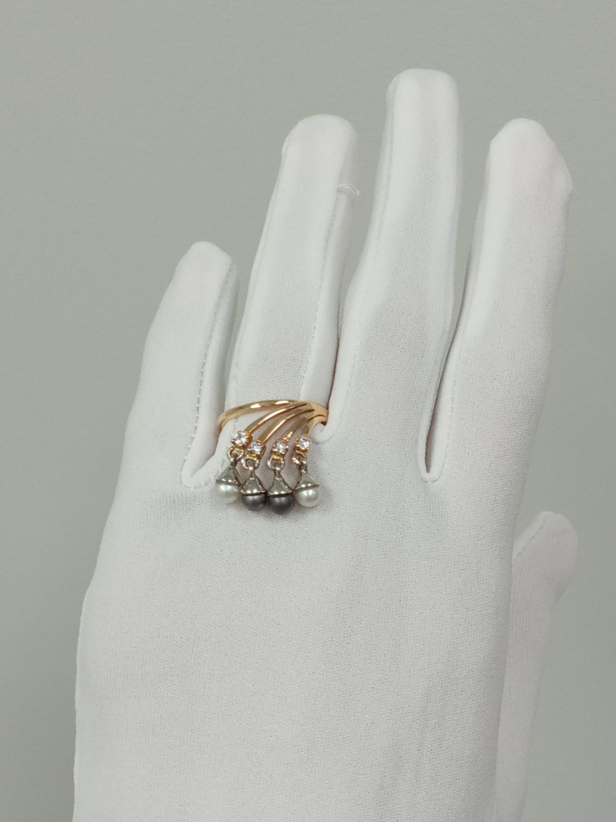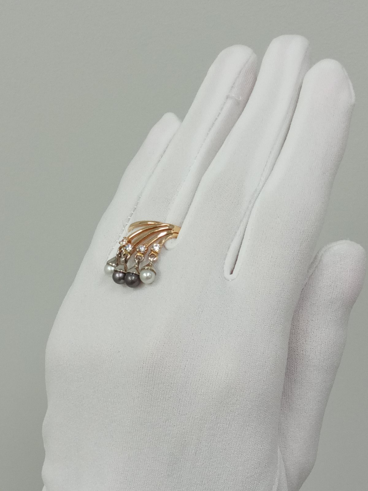 Кольцо из золота в красном с белым цвете с жемчугом и цирконом 01-200214111