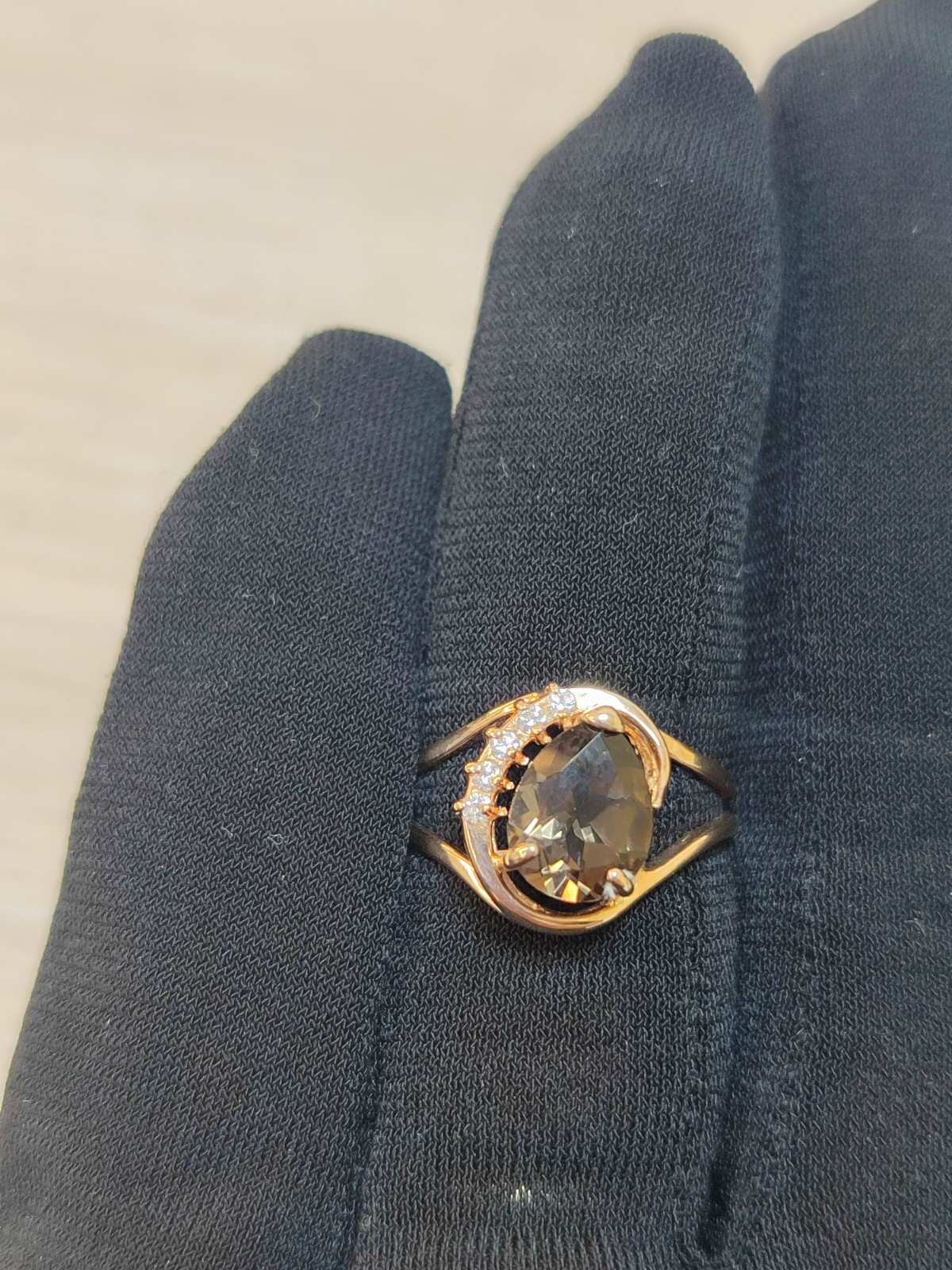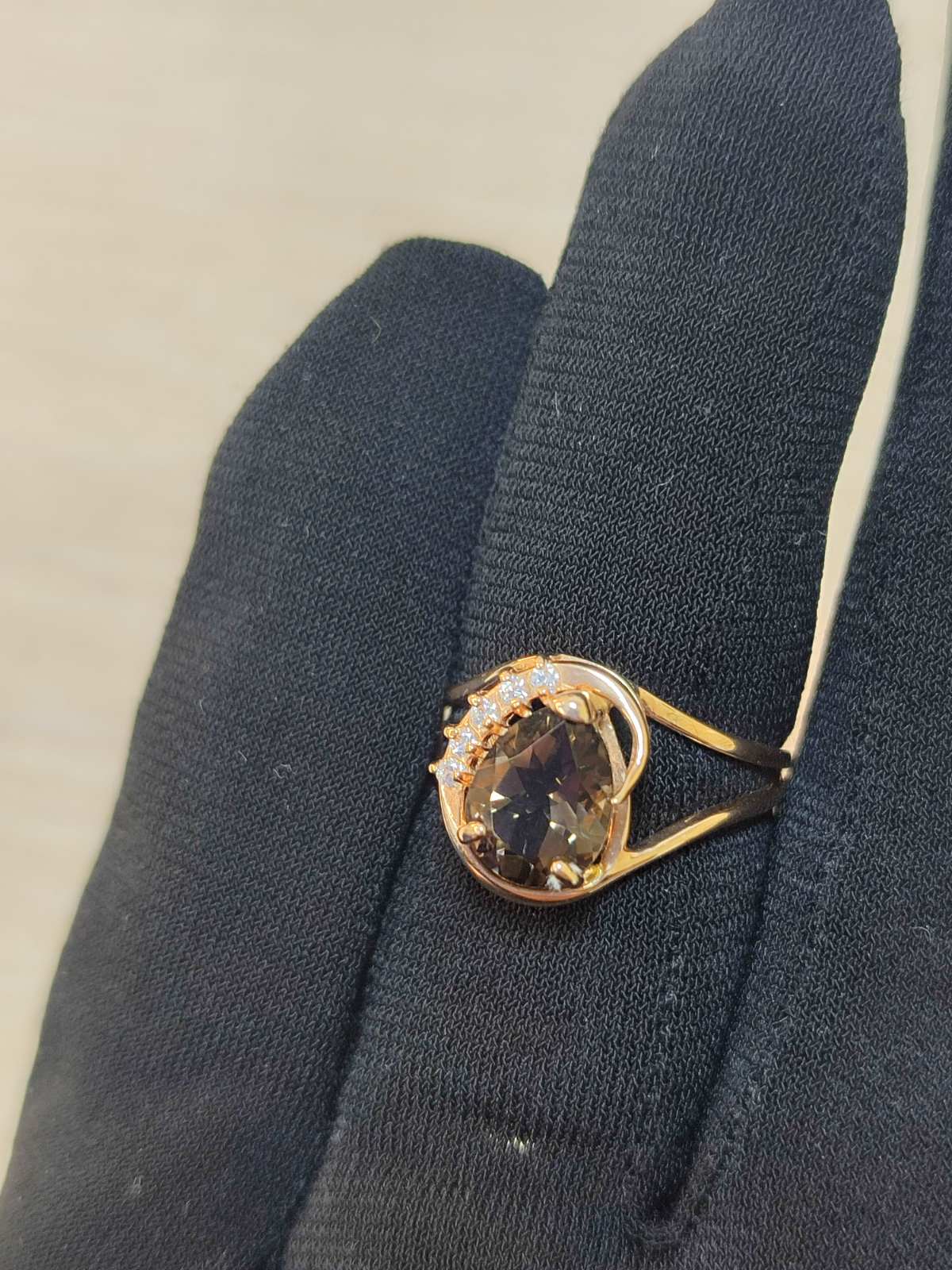 Кольцо из золота с дымчатым кварцем и цирконом 01-200364581