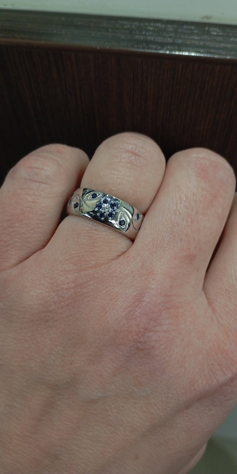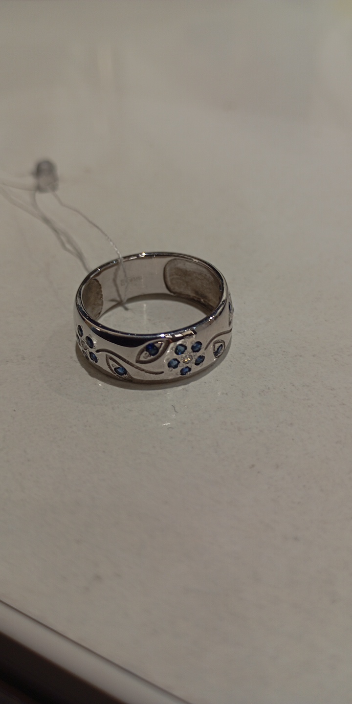 Кольцо из золота с синими корундами и белыми бриллиантами 01-200175224