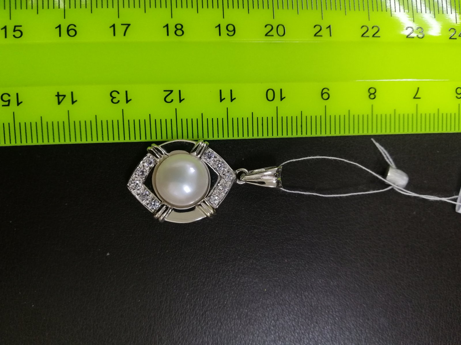 Кулон из золота белого цвета с жемчугом и цирконом 01-200316032