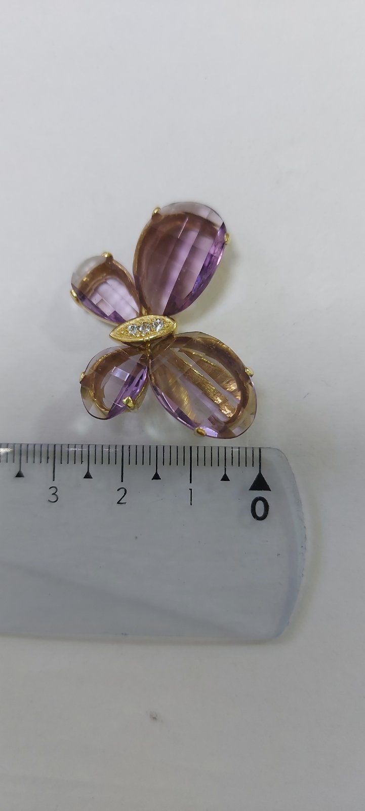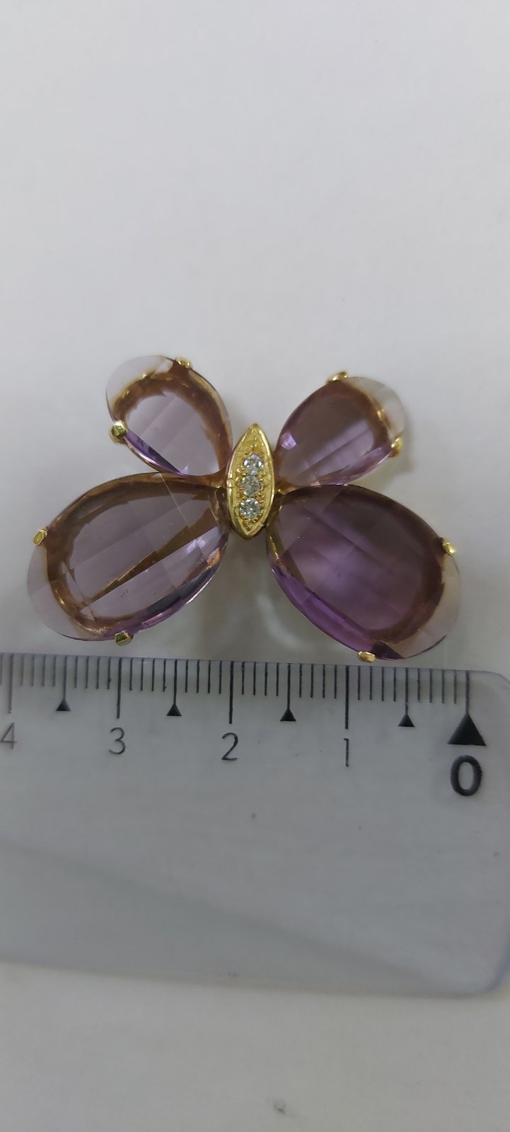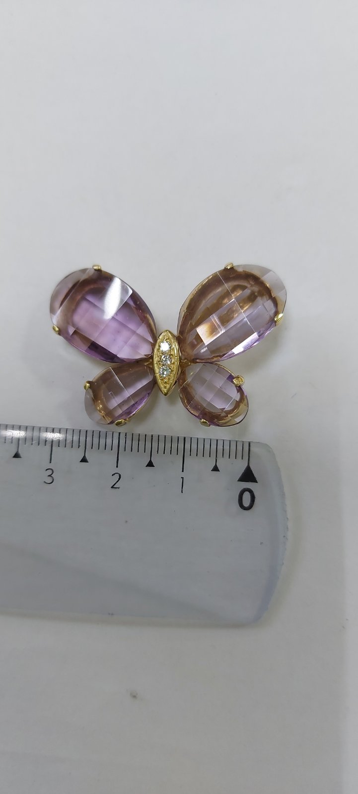 Кулон из золота желтого цвета с сиреневыми аметистами «Бабочка» 01-200055401