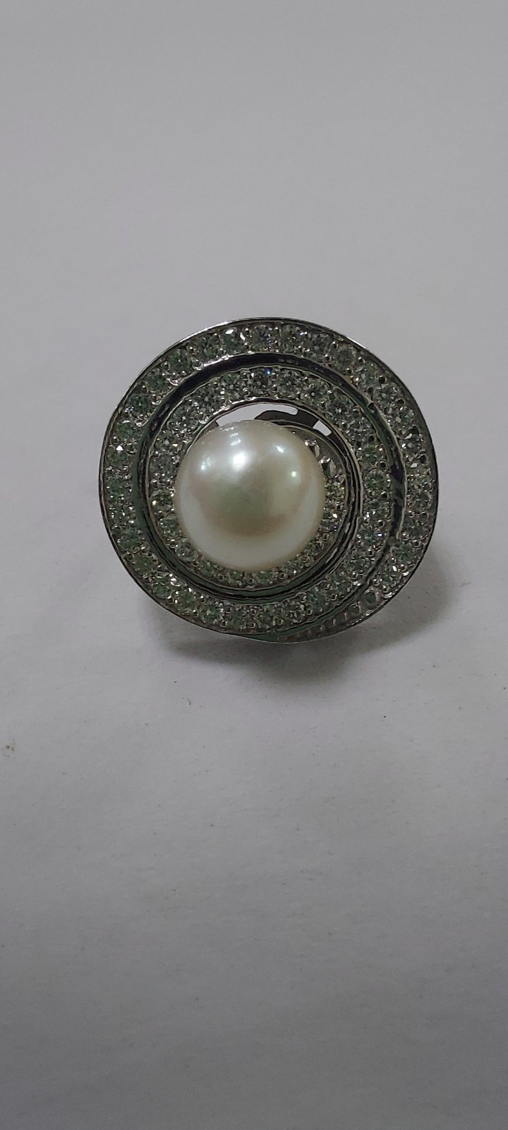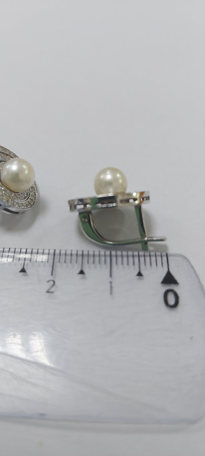 Серьги из белого золота с белыми бриллиантами и жемчугом 01-200302492