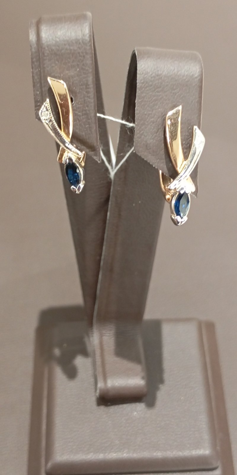 Серьги из красного с белым золота с синими корундами и белыми бриллиантами 01-200538420