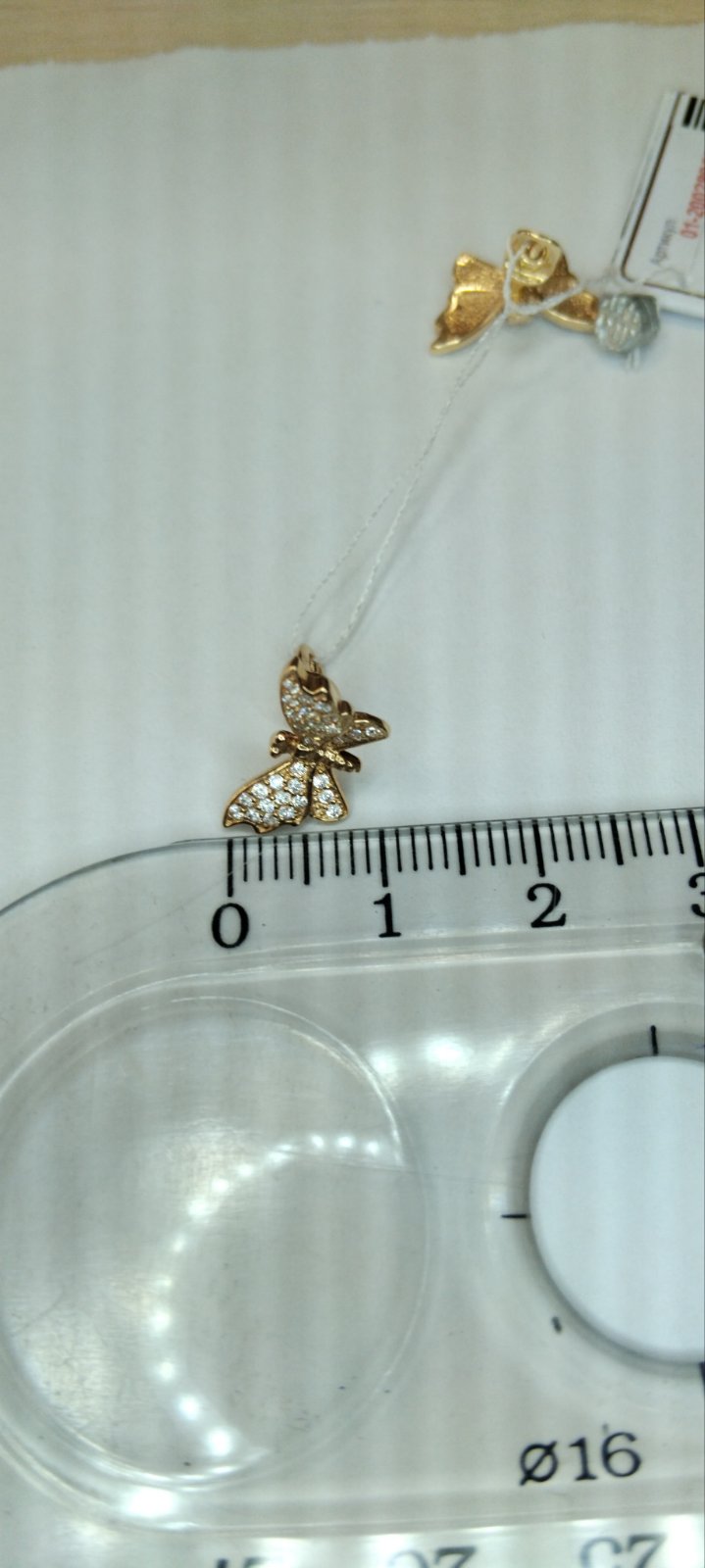 Серьги из золота красного цвета с цирконом «бабочка» 01-200289565
