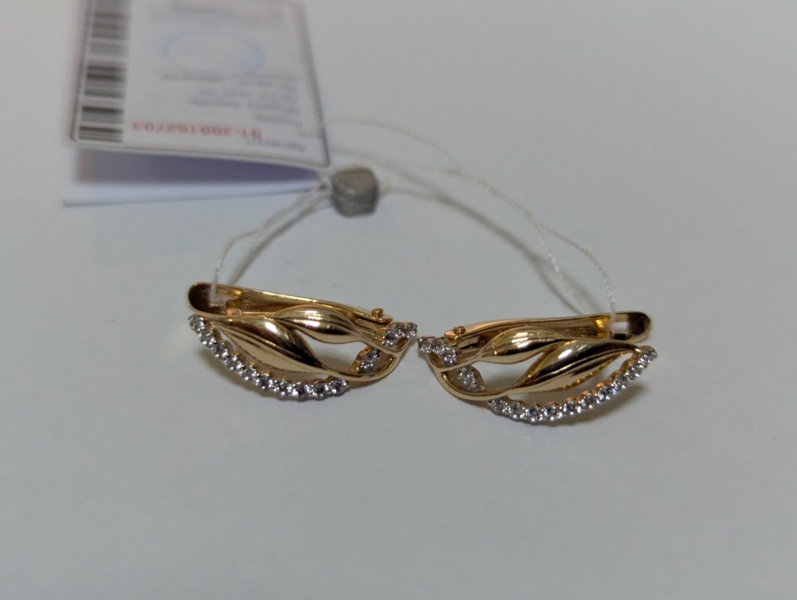 Серьги из золота в красном с белым цвете с цирконом 01-200162703