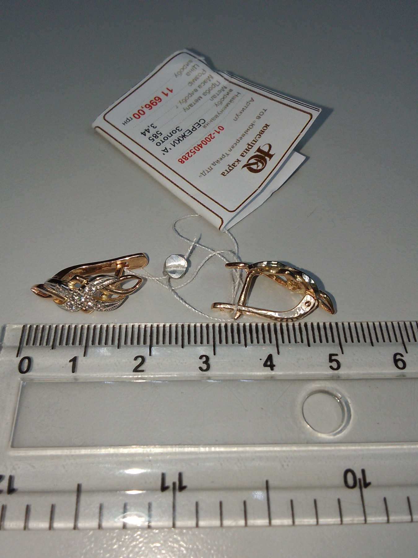 Серьги из золота в красном с белым цвете с цирконом 01-200405288