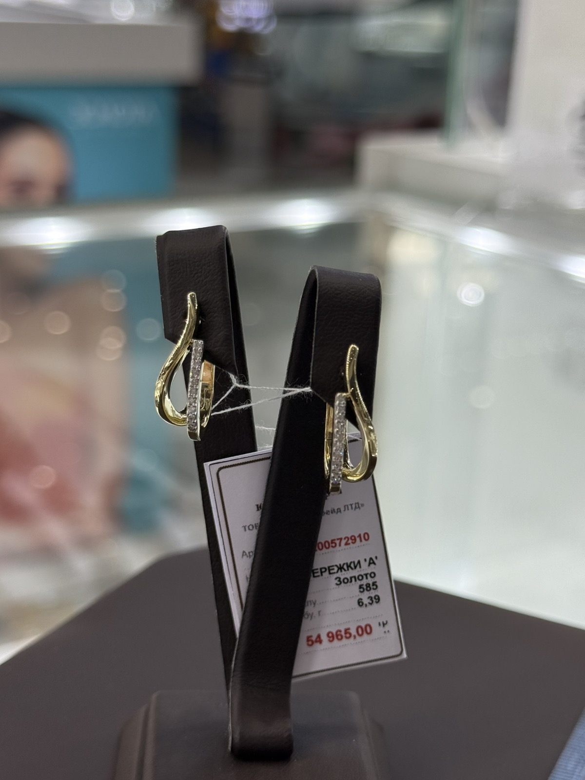 Серьги из золота в желтом с белым цвете с белыми бриллиантами 01-200572910