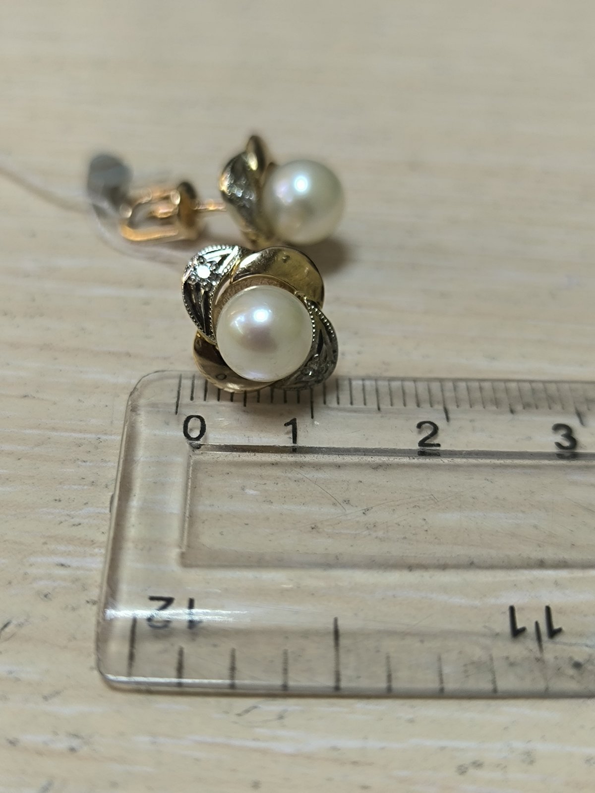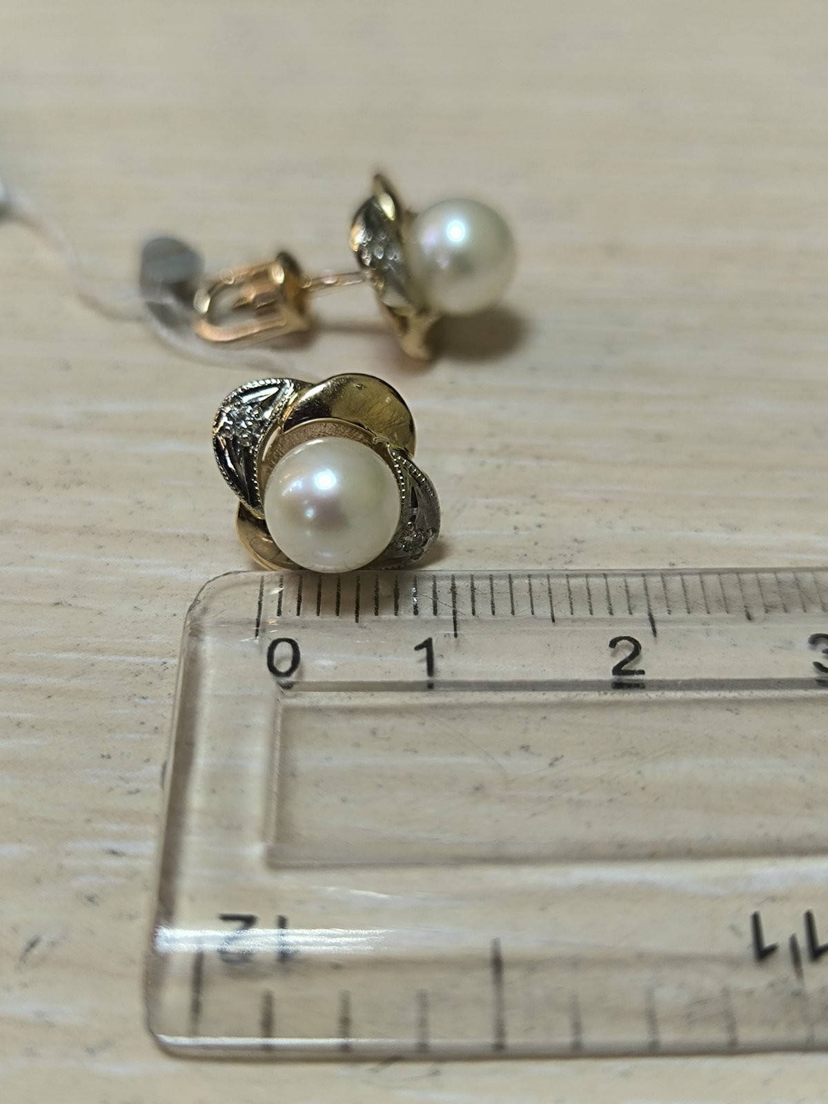 Серьги из золота с белыми бриллиантами и жемчугом 01-200435372