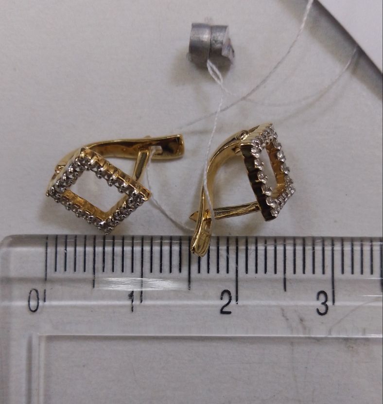 Серьги из золота желтого с белым цвета с цирконом «Ромб» 01-200379284