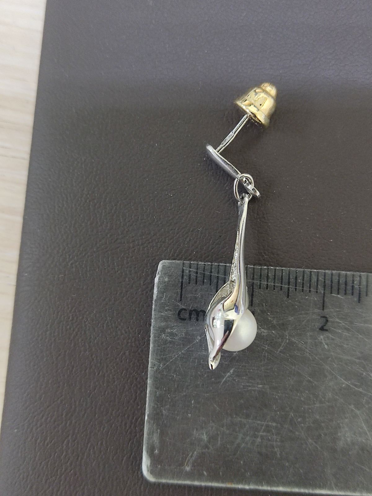 Серьги из желтого с белым золота с жемчугом и цирконом 01-200525204