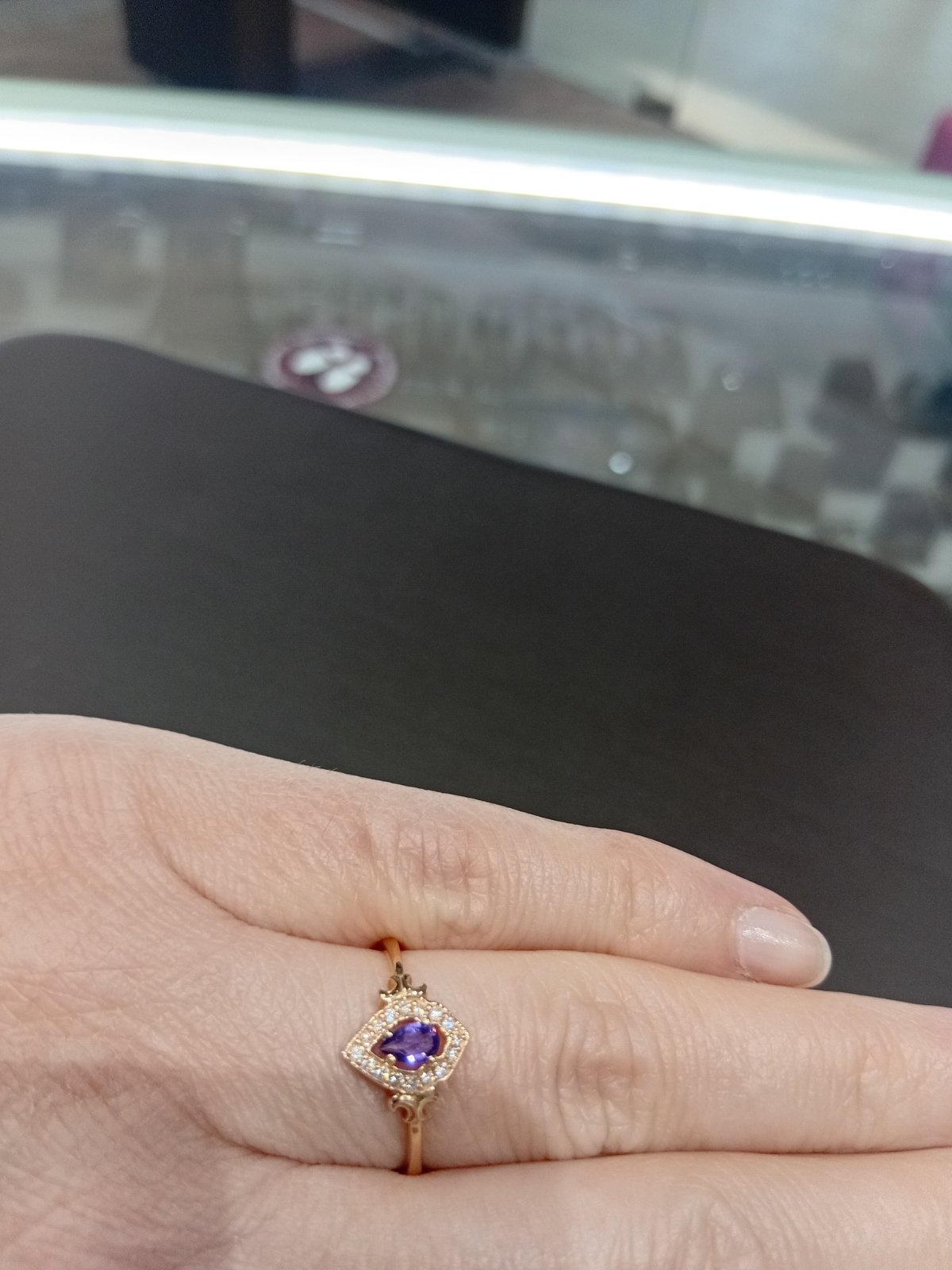 Золотое кольцо красного цвета с цирконом 01-200362669