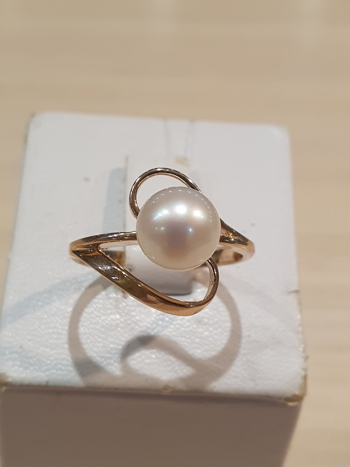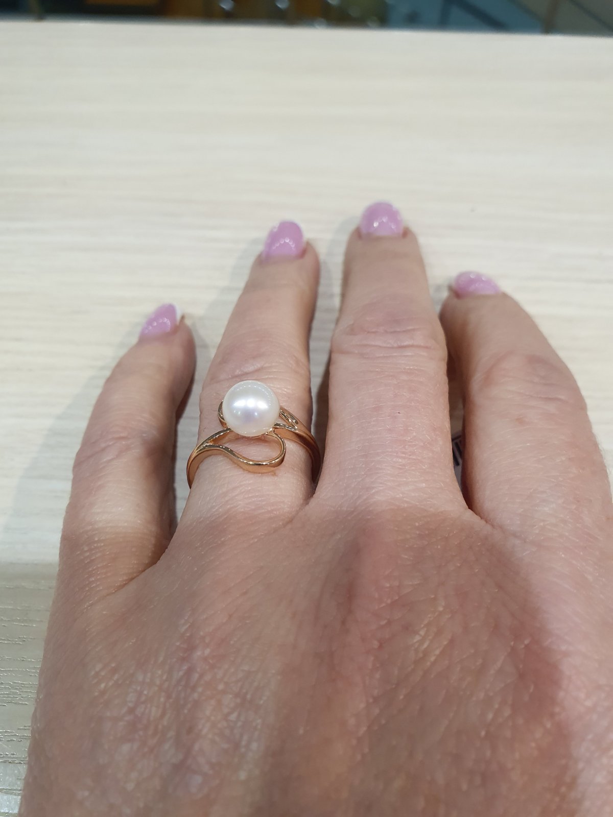 Золотое кольцо красного цвета с жемчугом 01-200289596
