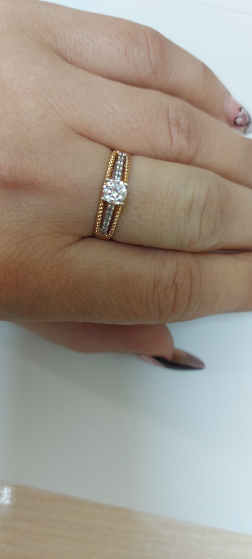Золотое кольцо красного с белым цвета с цирконом 01-19243756