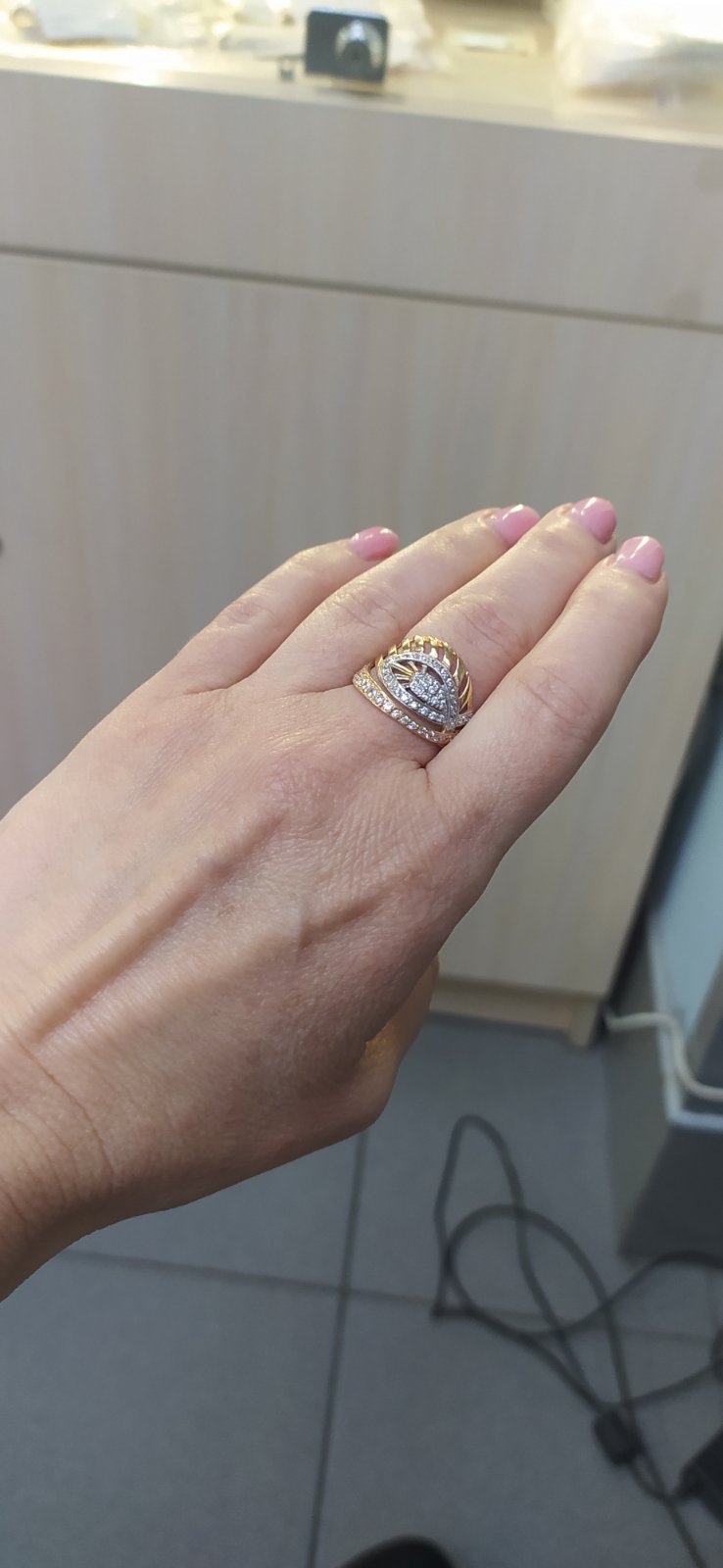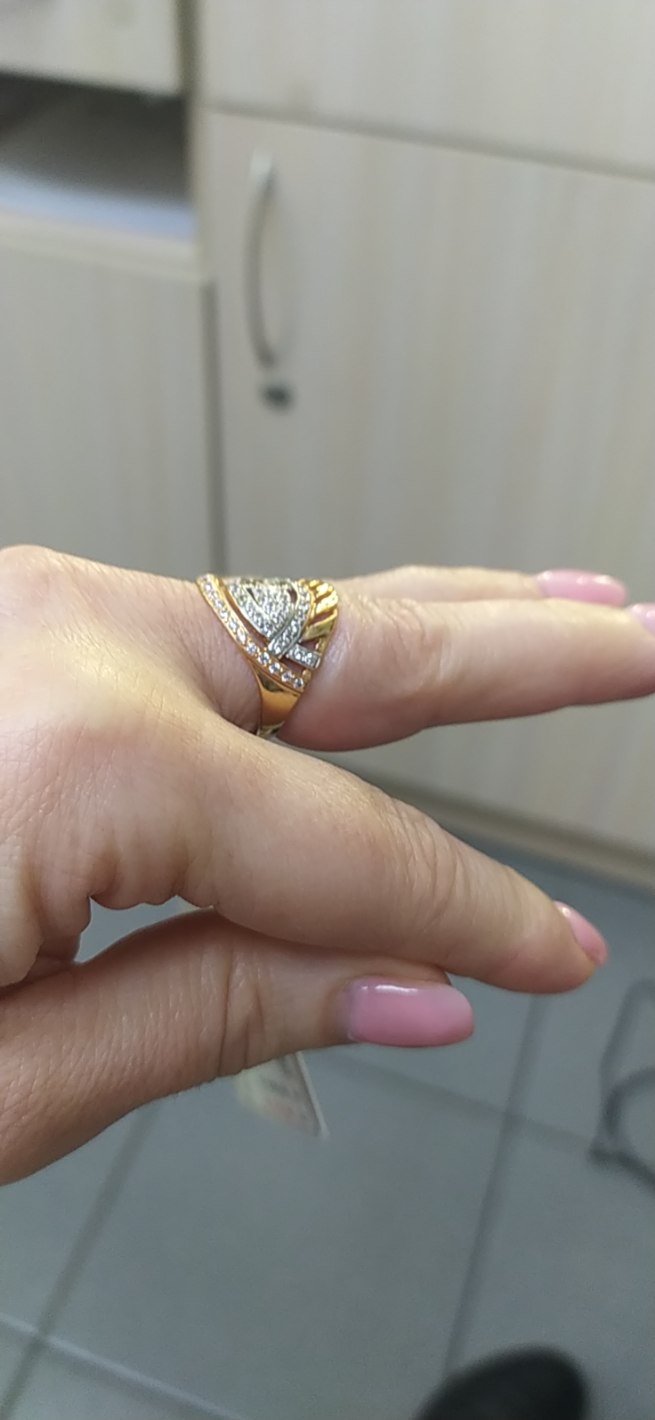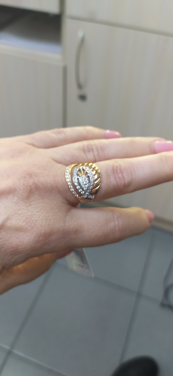 Золотое кольцо красного с белым цвета с цирконом 01-200105111