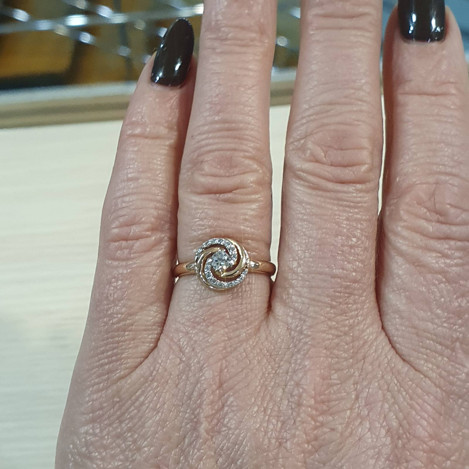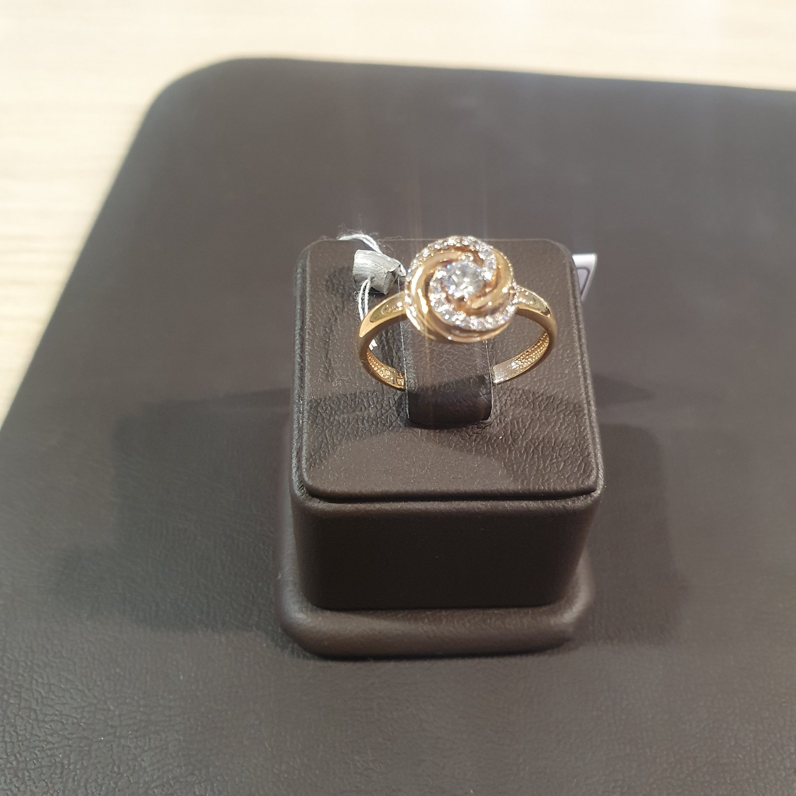 Золотое кольцо красного с белым цвета с цирконом 01-200214115