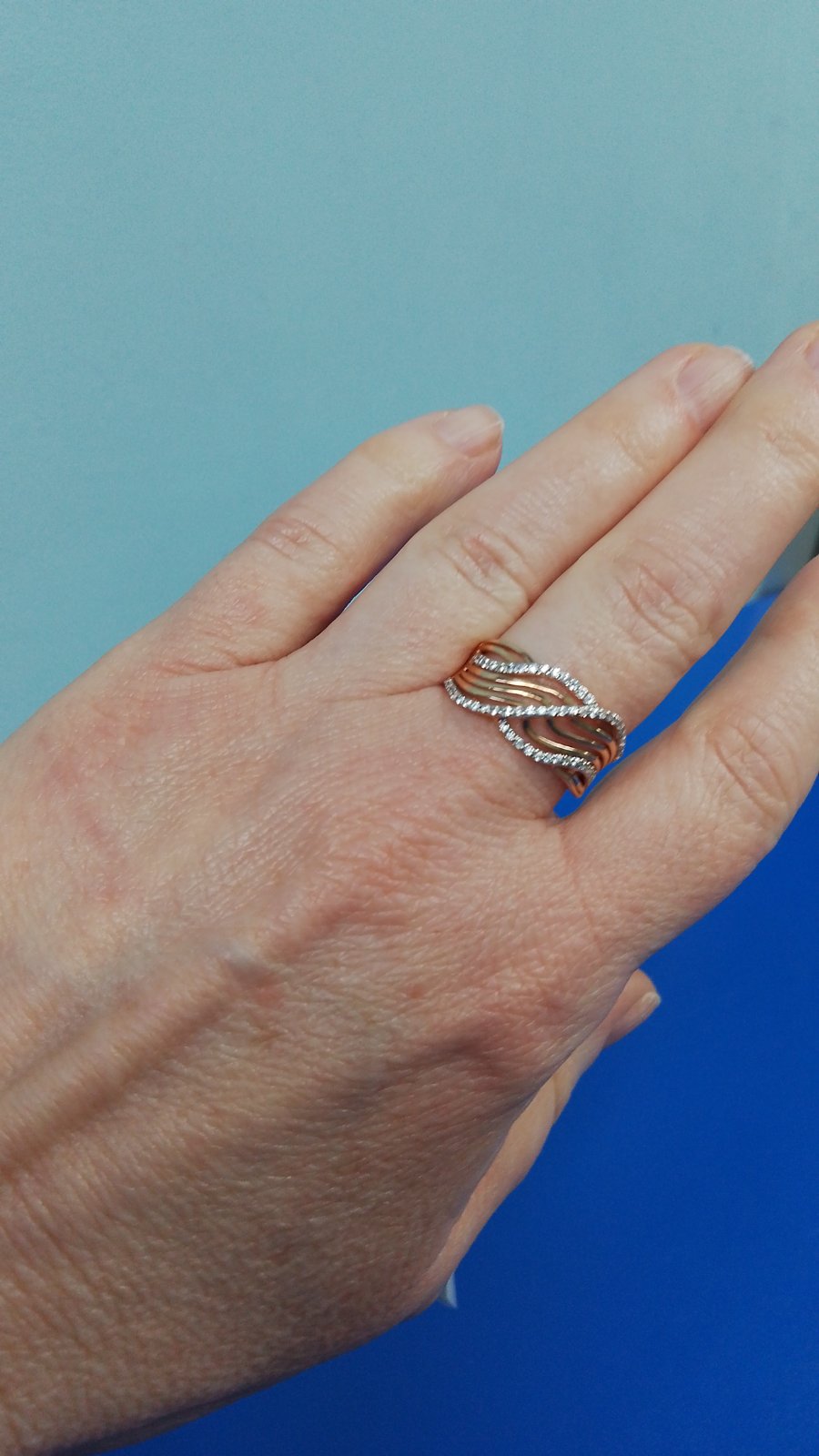 Золотое кольцо красного с белым цвета с цирконом 01-200218126