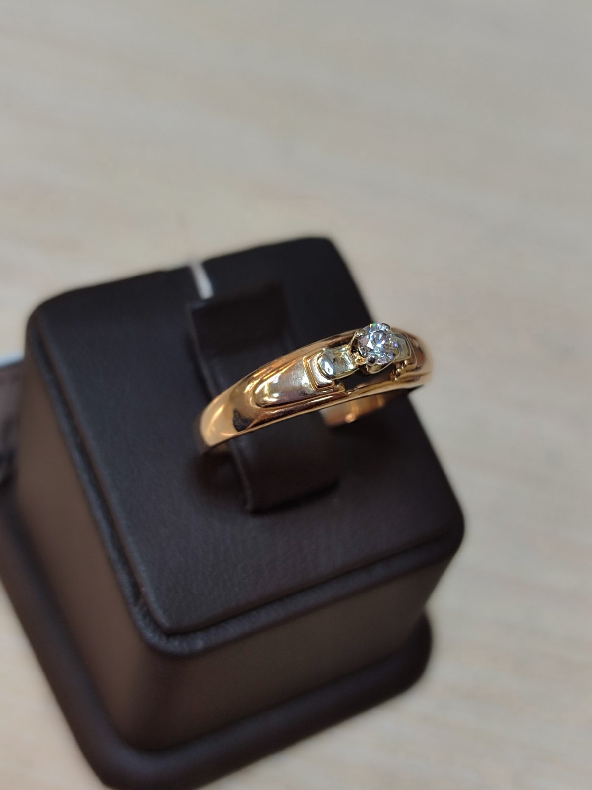 Золотое кольцо красного с белым цвета с цирконом 01-200282414