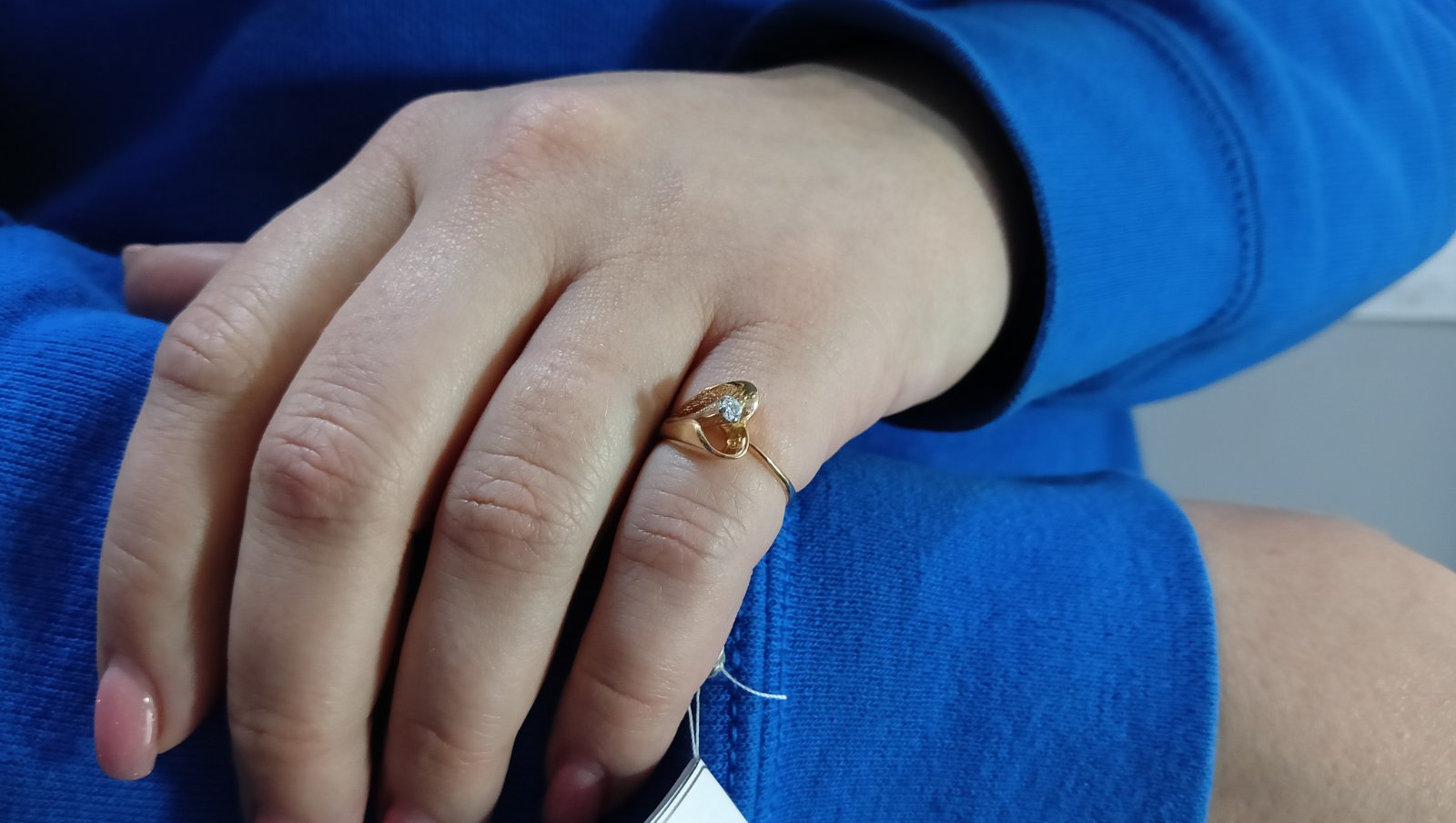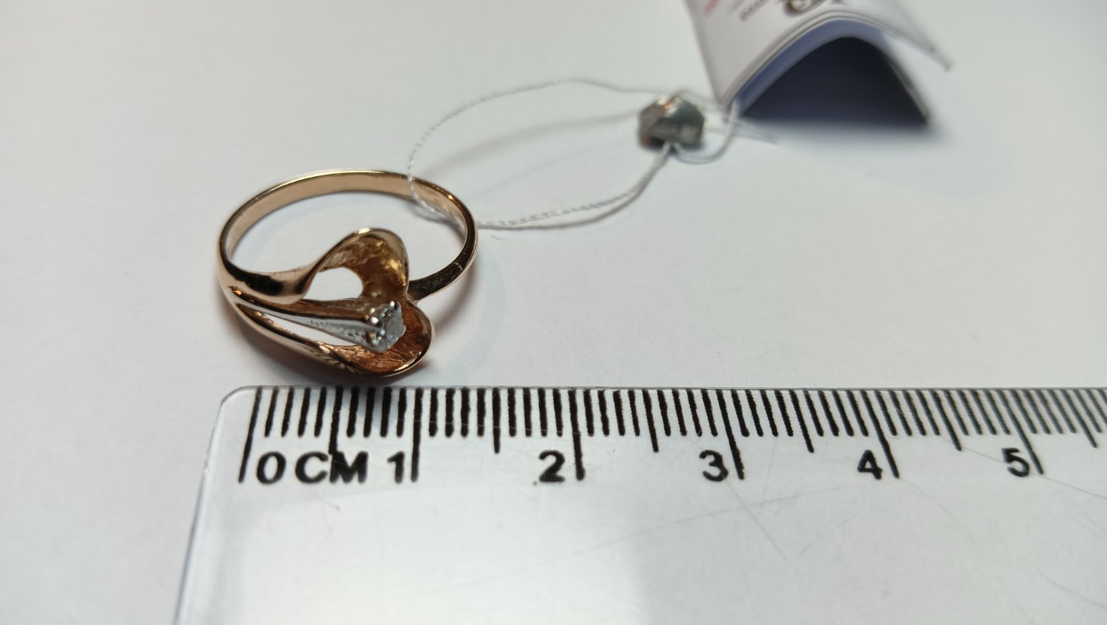 Золотое кольцо красного с белым цвета с цирконом «Лилия» 01-200299200