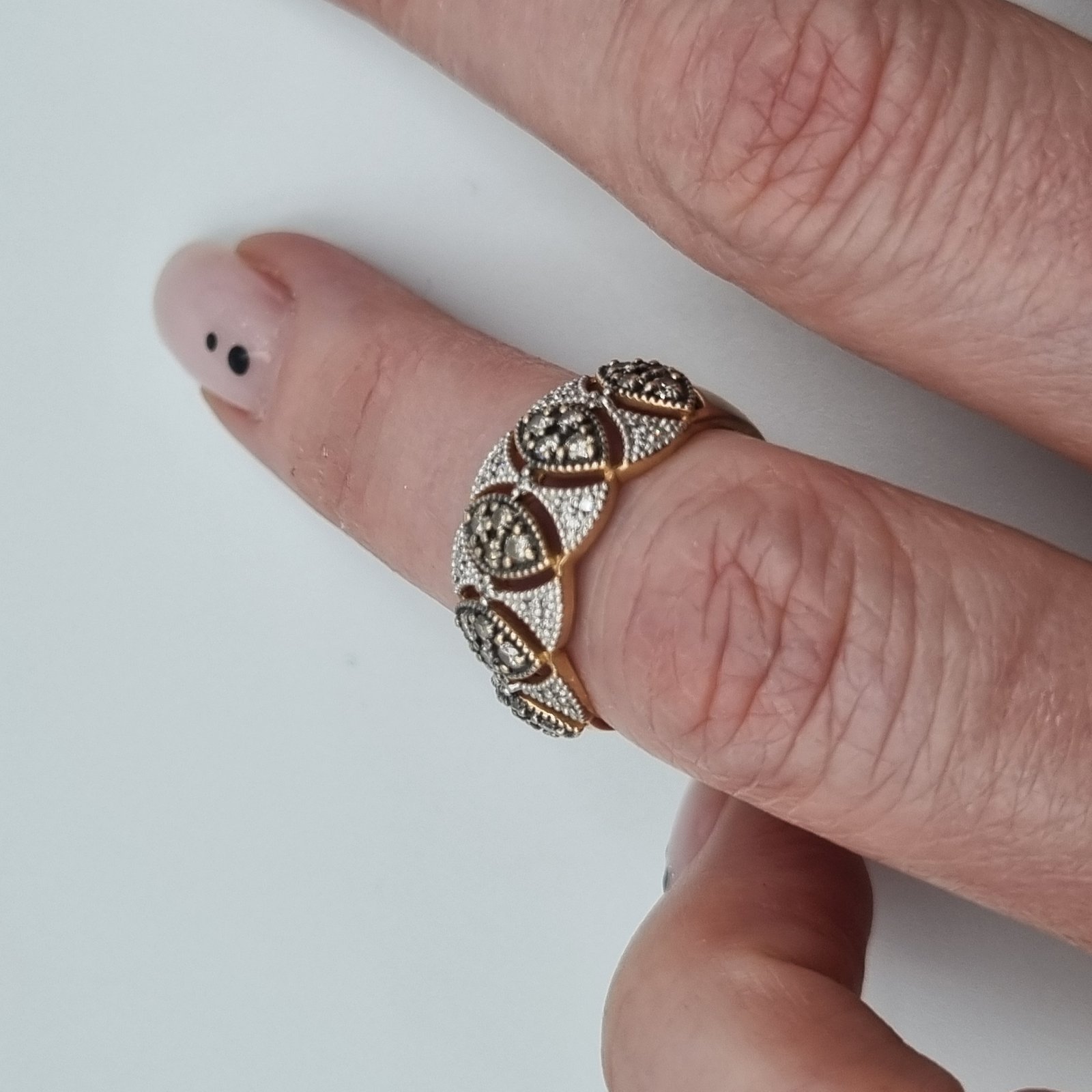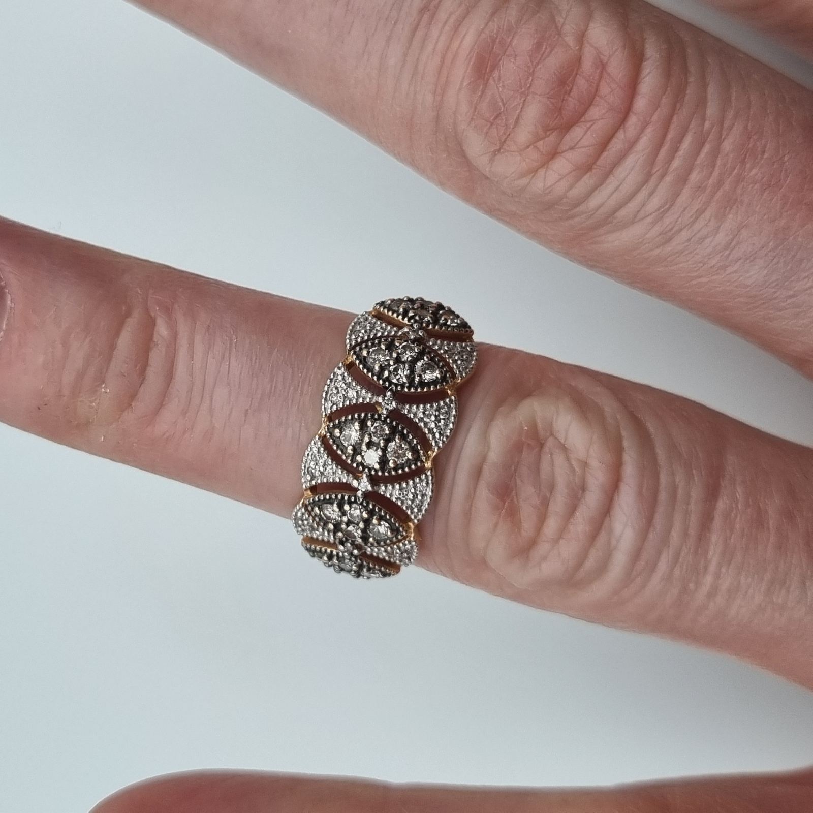 Золотое кольцо красного с белым цвета с желтыми бриллиантами 01-200915109