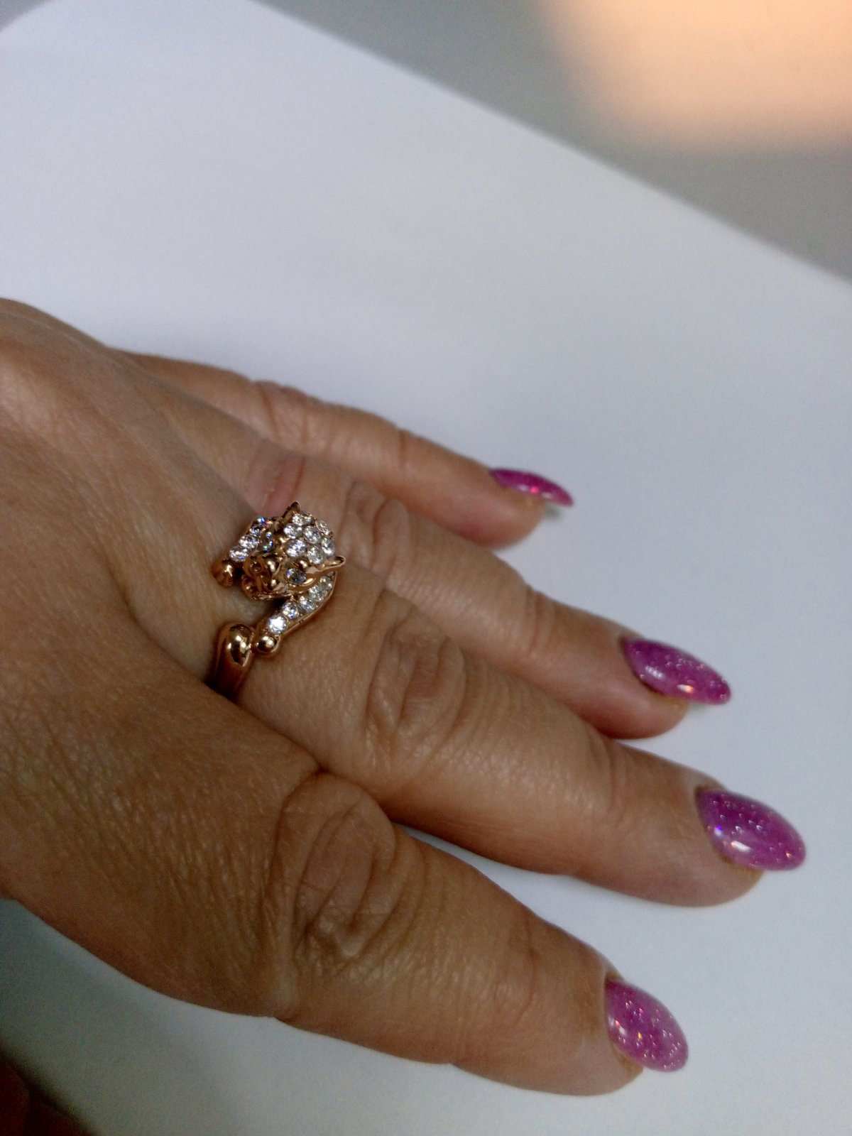 Золотое кольцо в красном цвете с цирконом «Пантера» 01-200450644