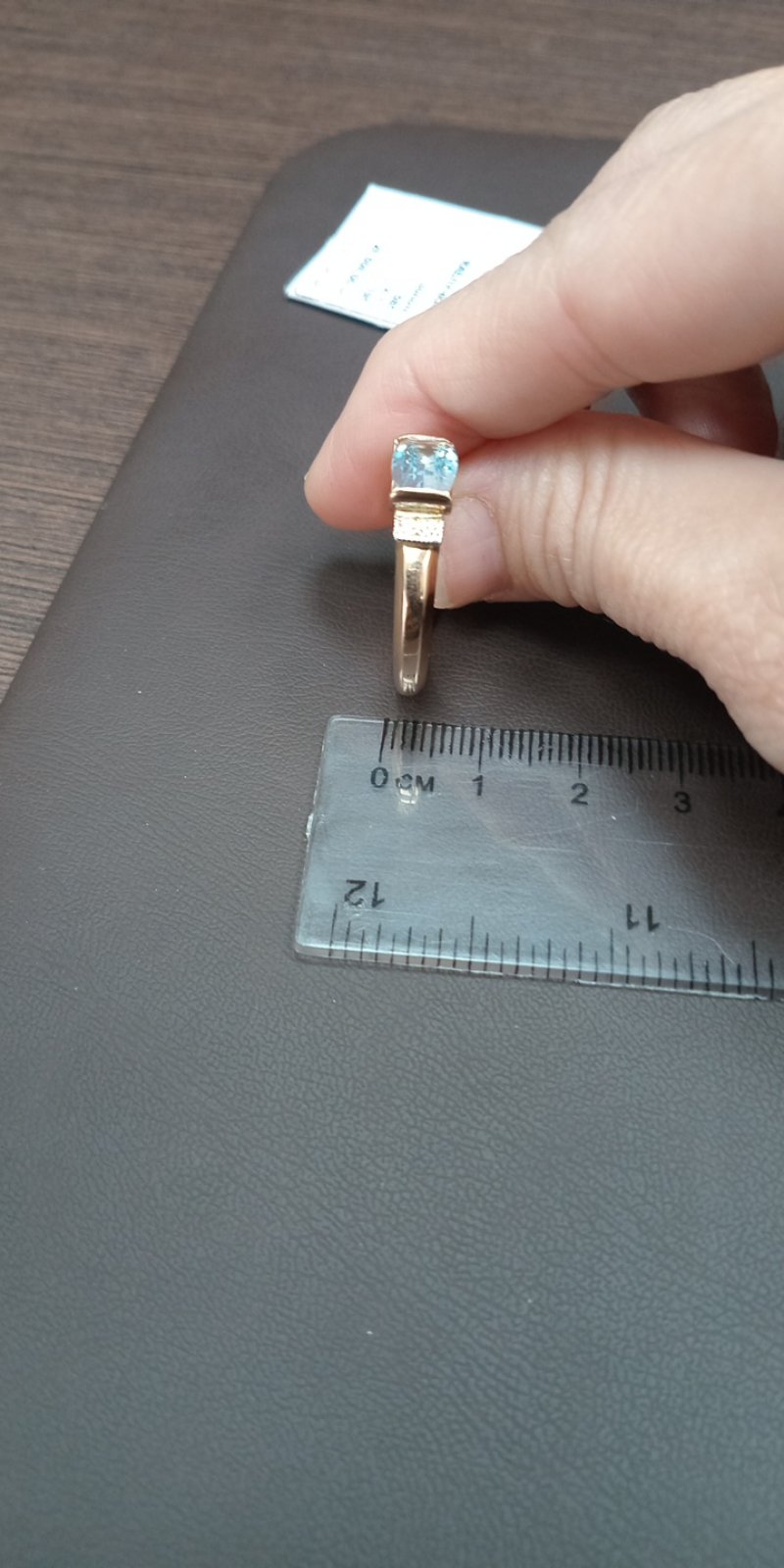 Золотое кольцо в красном с белым цвете с голубым топазом 01-200102702
