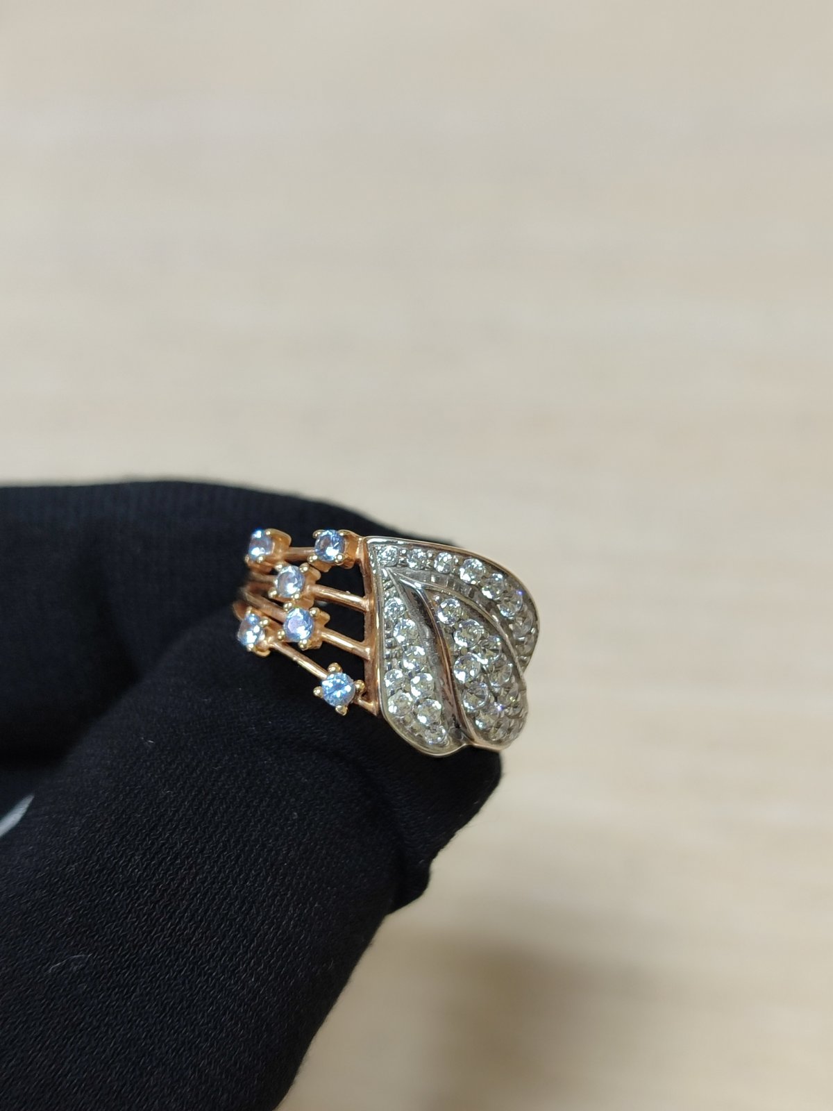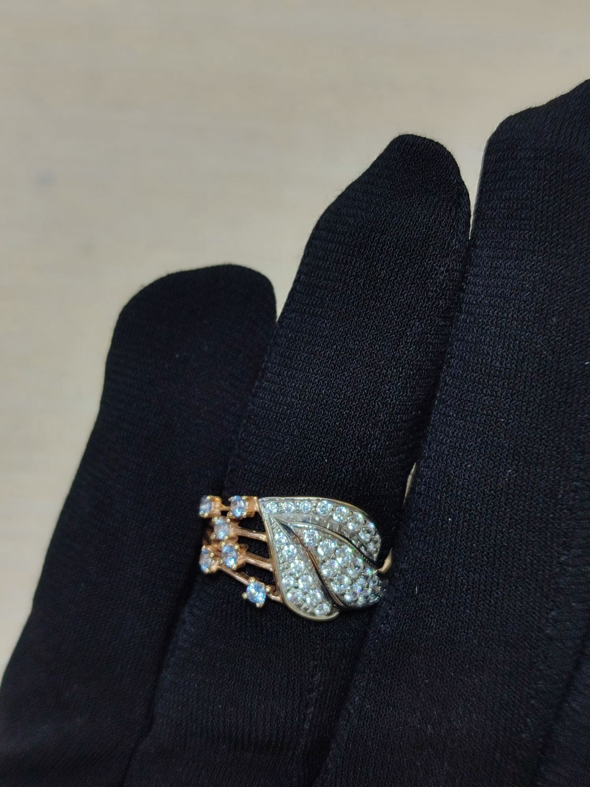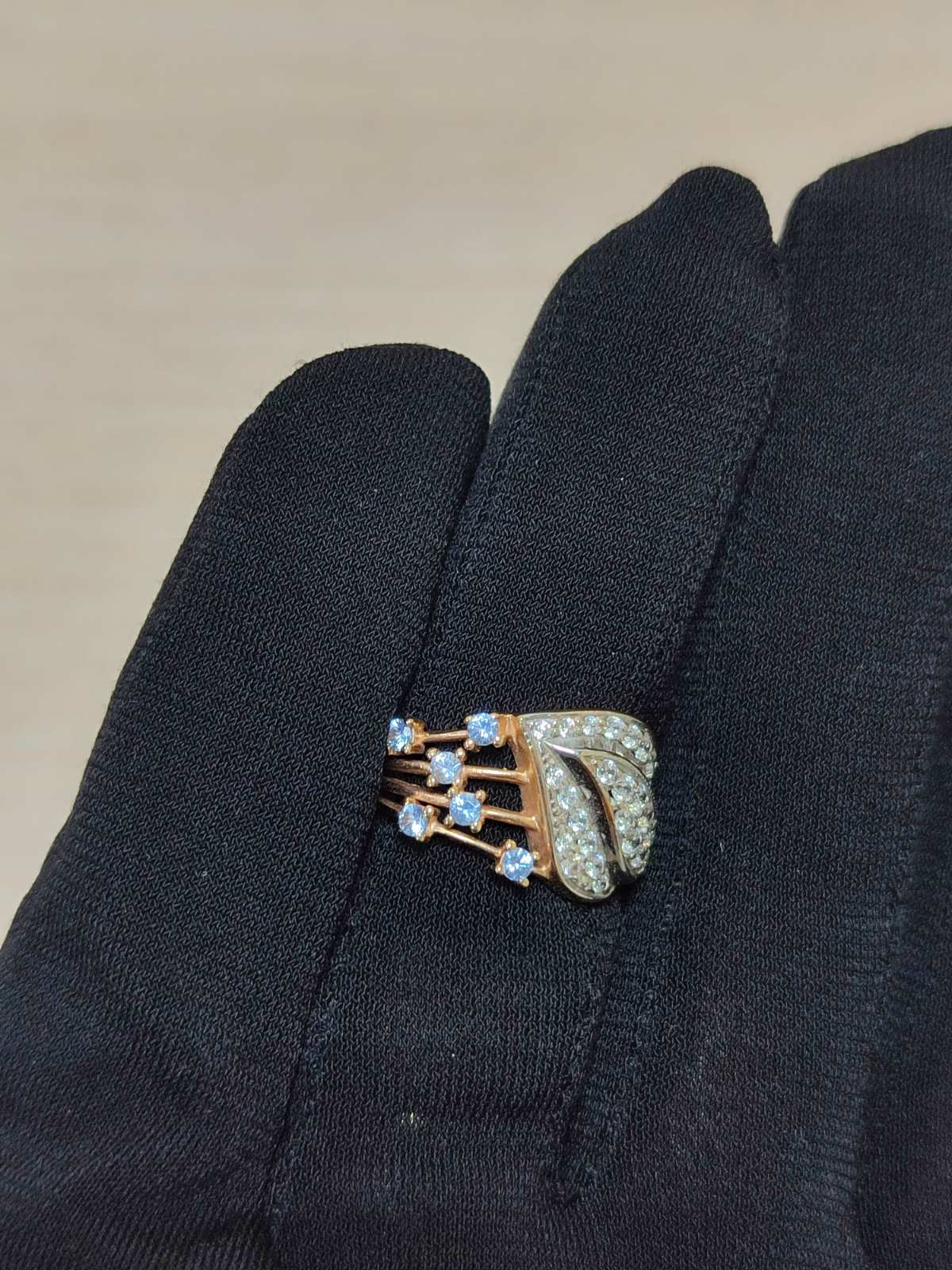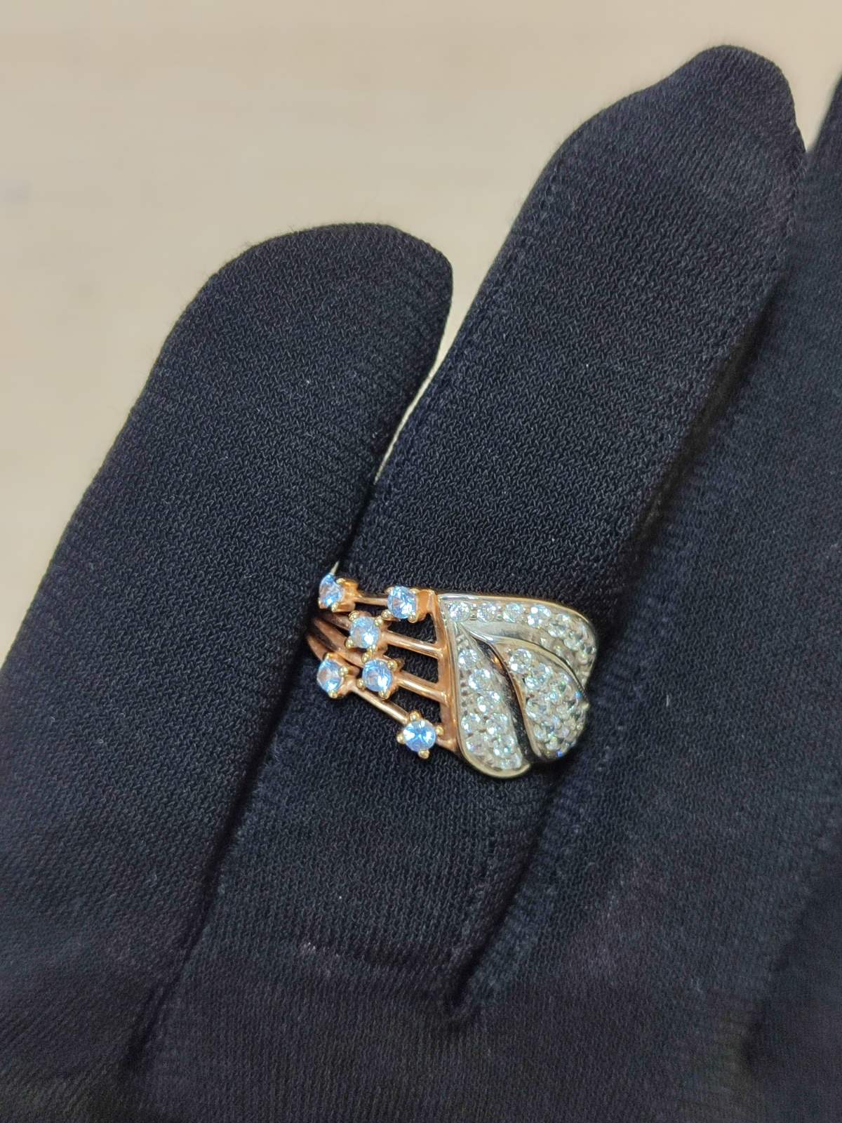 Золотое кольцо в красном с белым цвете с цирконом 01-18983992