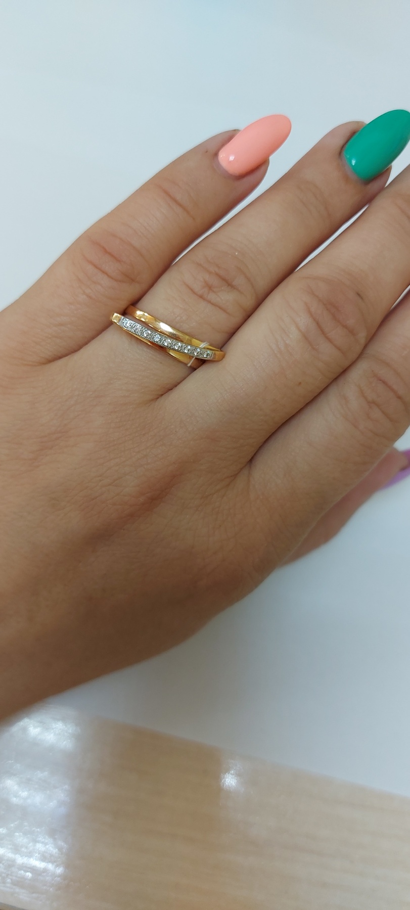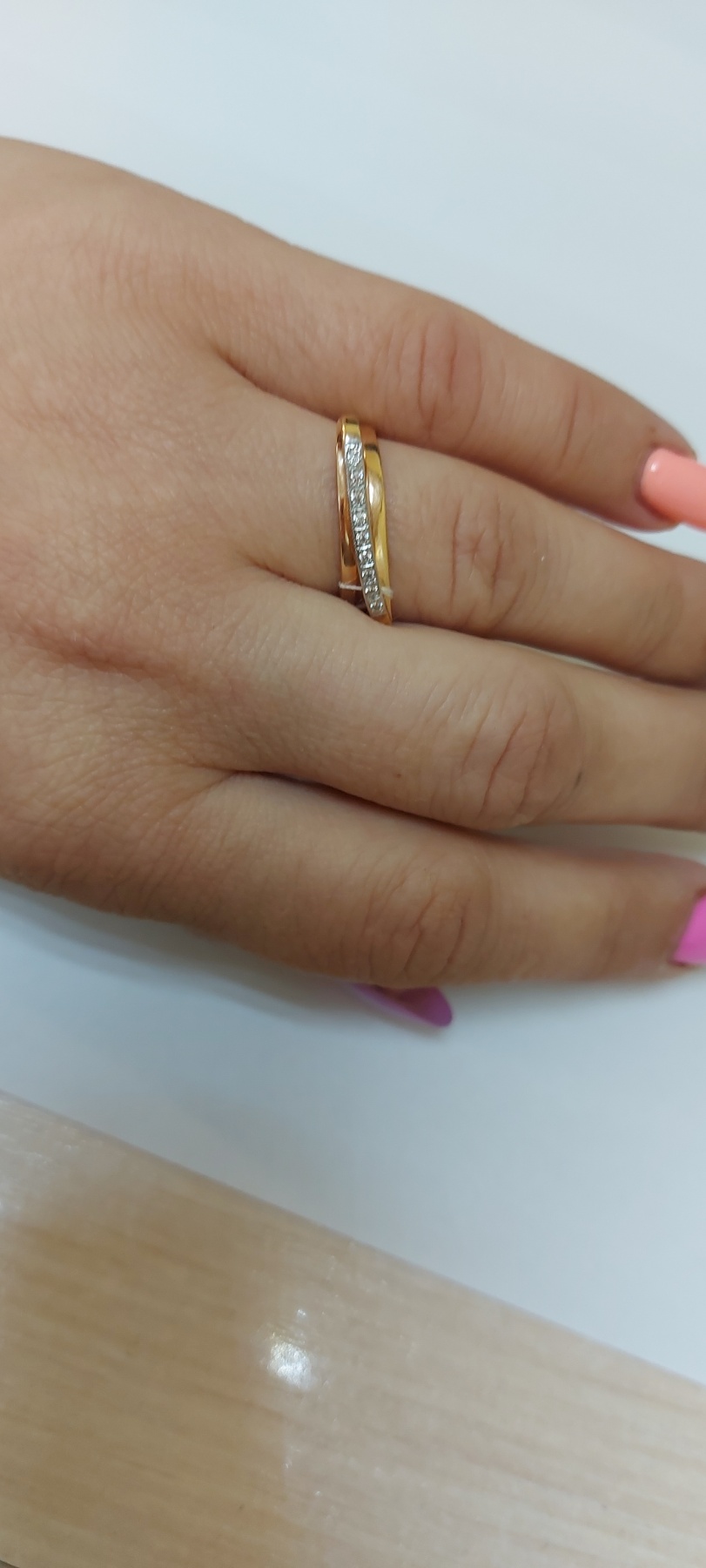 Золотое кольцо в красном с белым цвете с цирконом 01-19267275