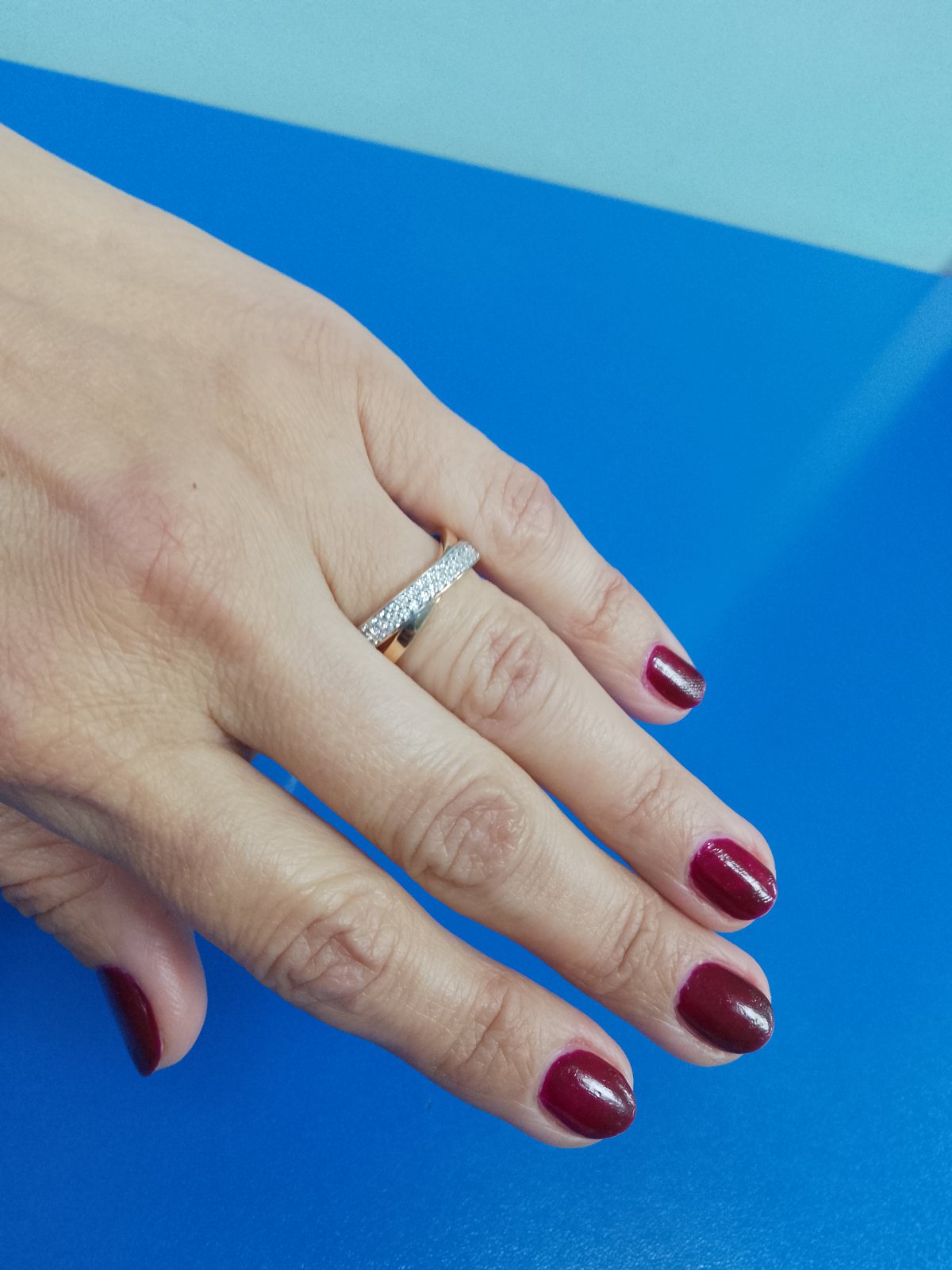 Золотое кольцо в красном с белым цвете с цирконом 01-200071979