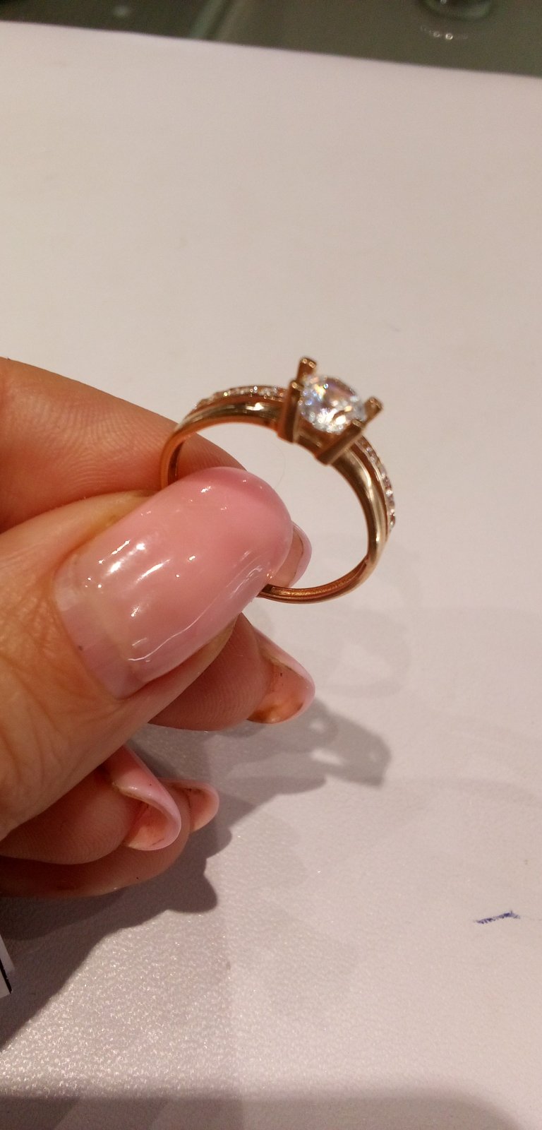 Золотое кольцо в красном с белым цвете с цирконом 01-200146466