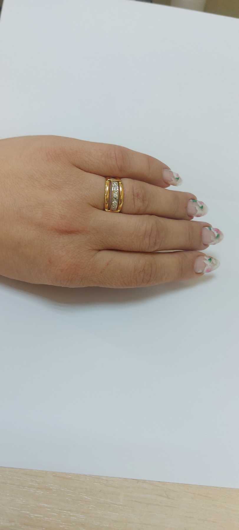 Золотое кольцо в красном с белым цвете с цирконом 01-200149672